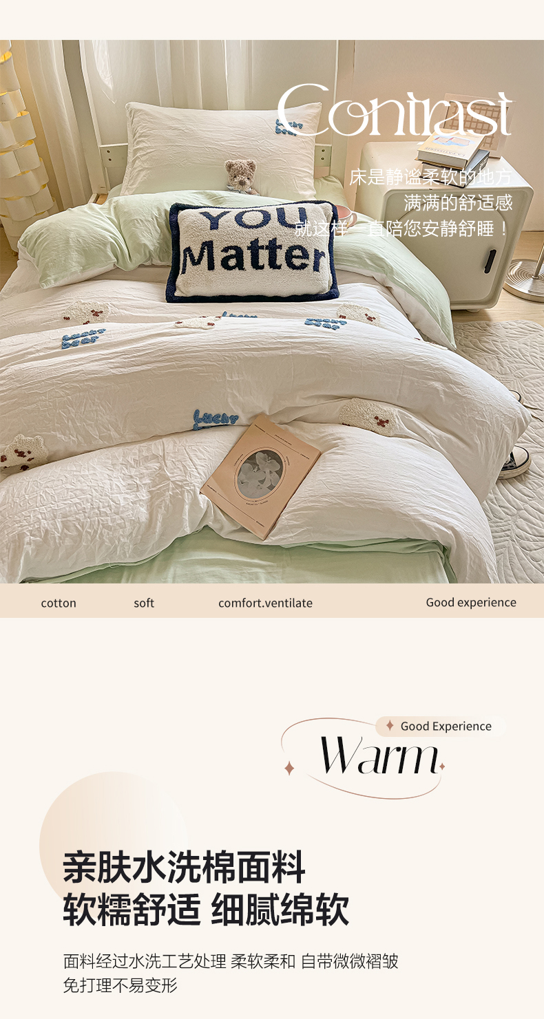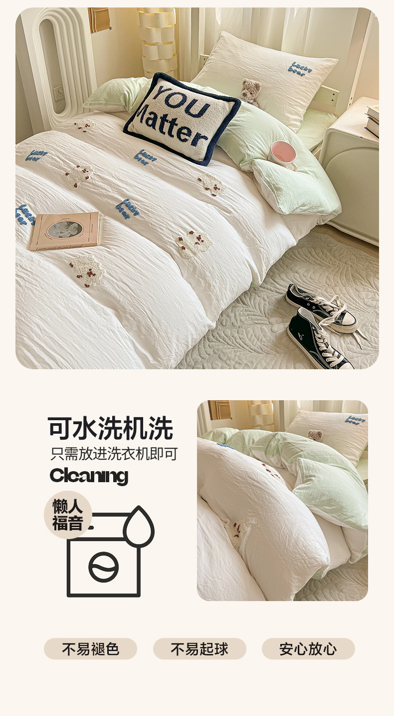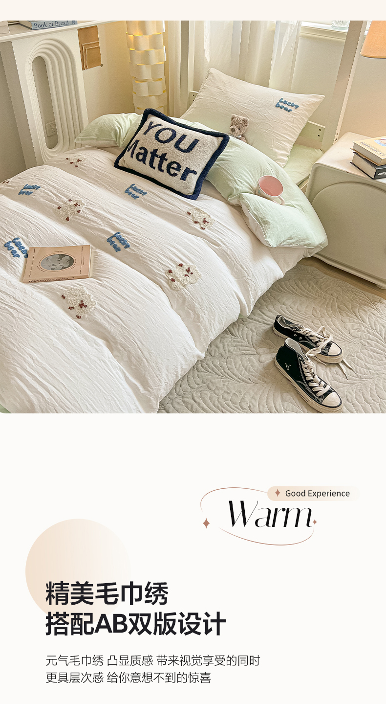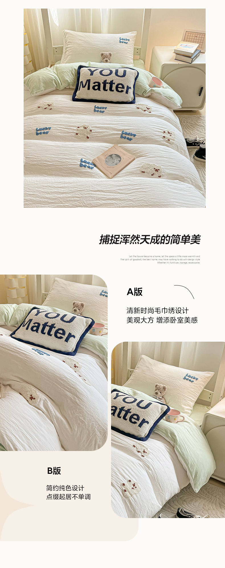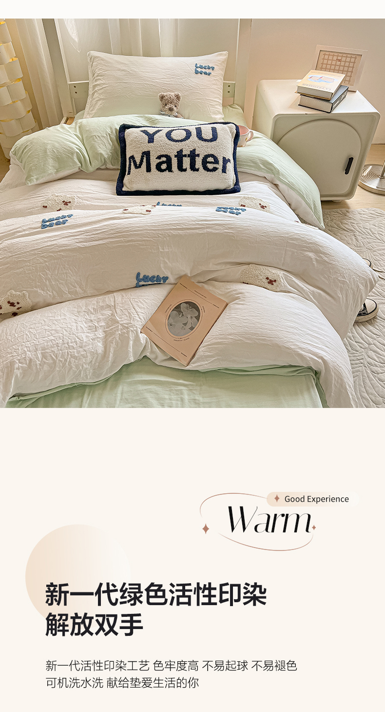 当前位置: 91家纺网 > 商品网购 > 床品套件 > 三件套 > 韩巢家纺 2024新款学生宿舍寝室上下铺超柔水洗棉毛巾绣被套床单三件套-小白熊(提供卖家秀) 小白熊 白绿