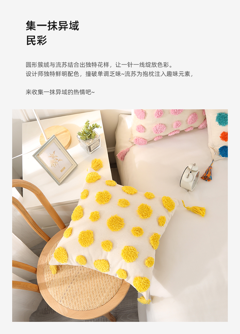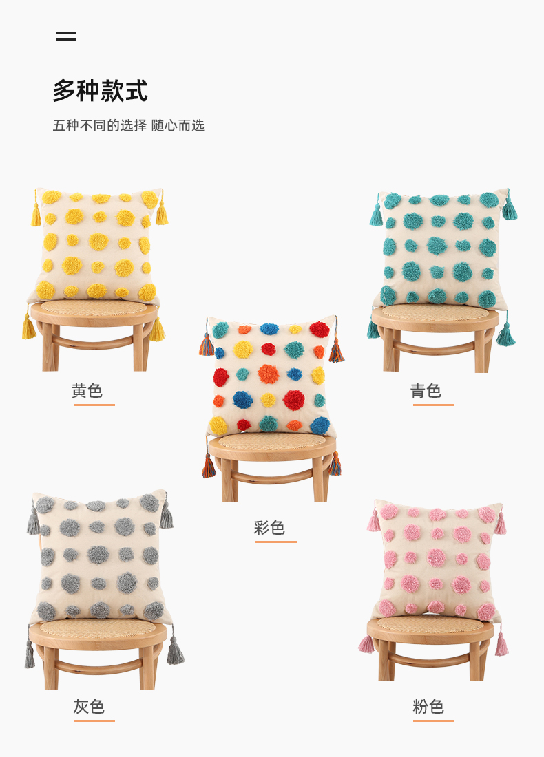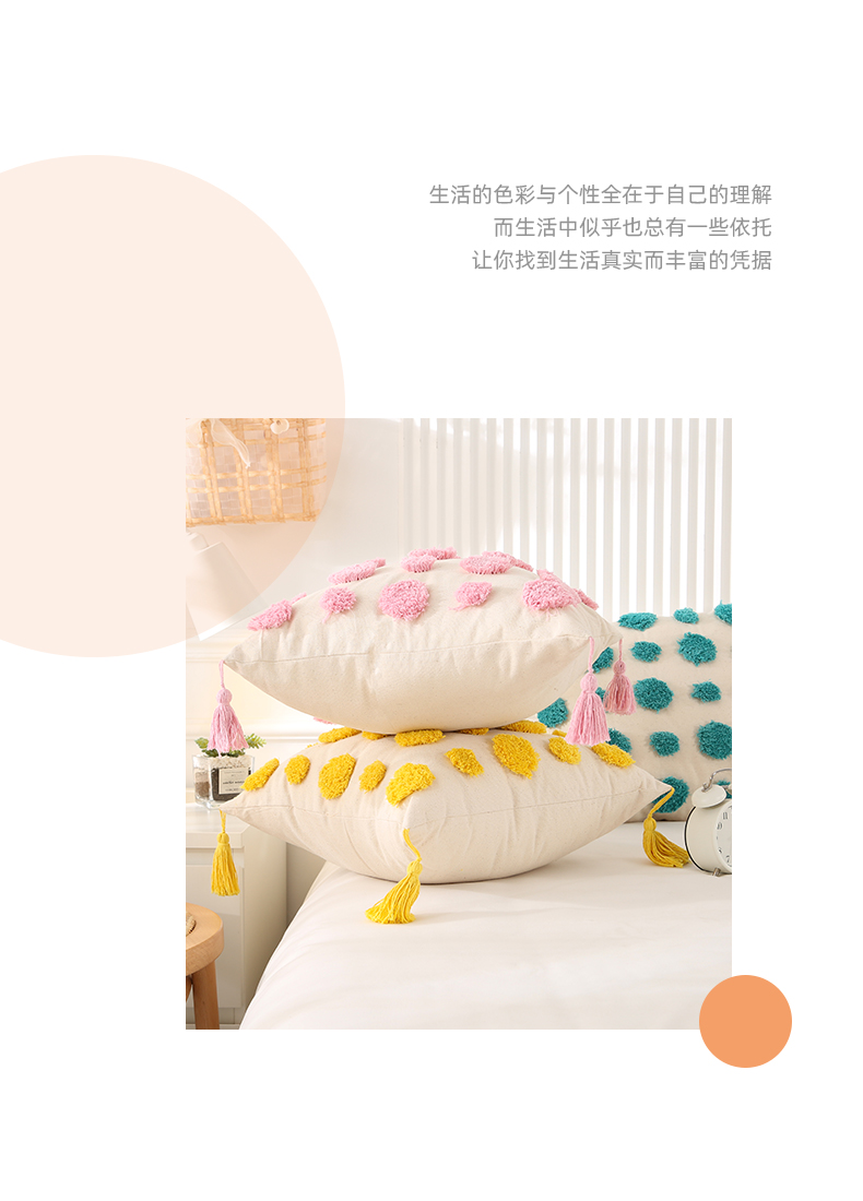 商品名称:囍莱家纺 2024新款亲肤多彩涤棉抱枕 流苏圆点-粉