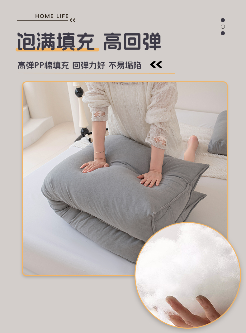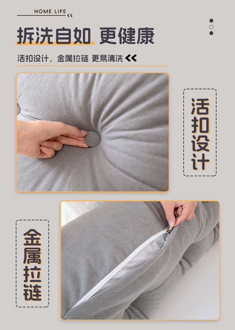 (总)碧尔家居 2025新款简约猫长条机械钉扣水洗棉床头靠枕,米黄,浅蓝,银灰