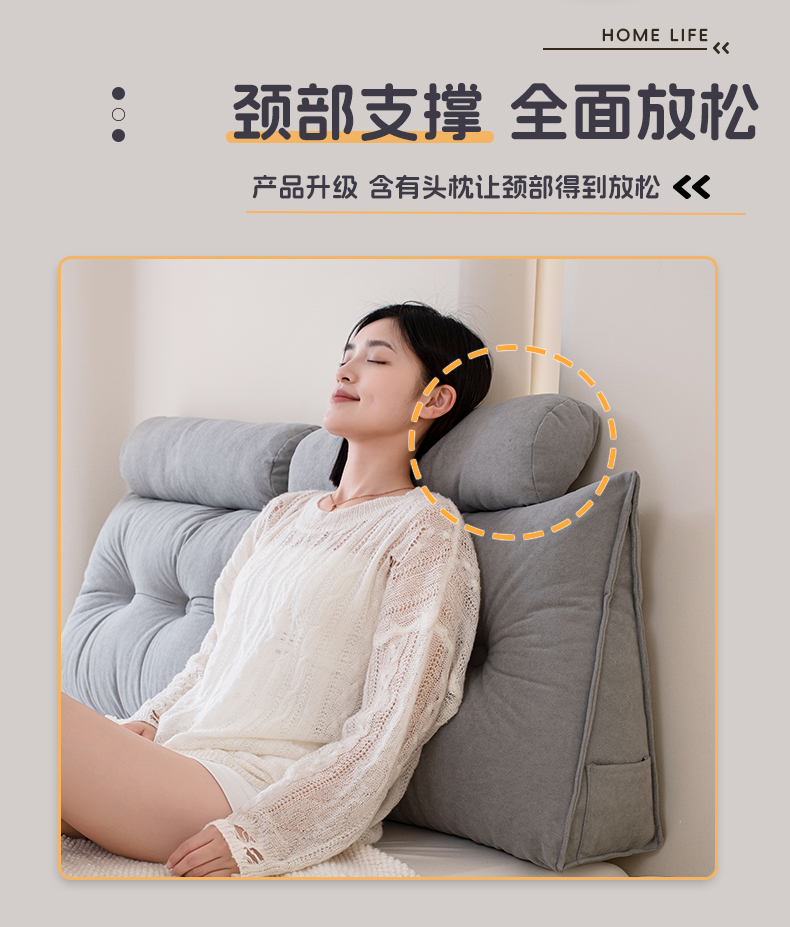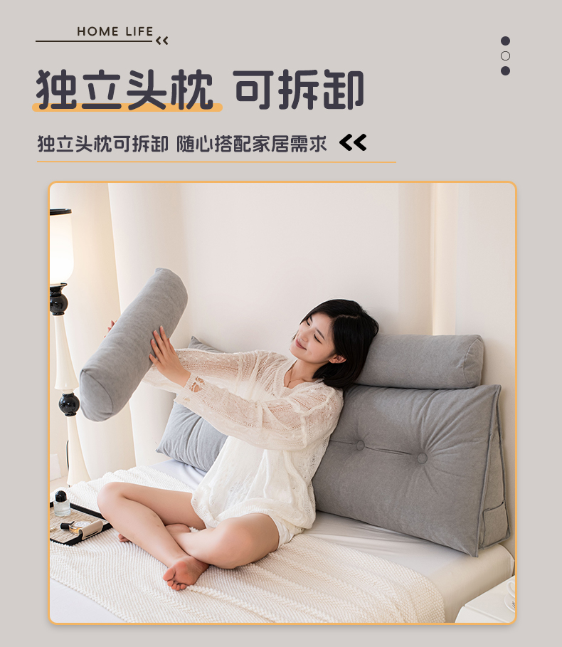 (总)碧尔家居 2025新款时尚床头靠枕护腰大靠背榻榻米三角靠垫飘窗看书加厚软包防撞免洗,卡其灰,蓝色,米白,深灰,天蓝