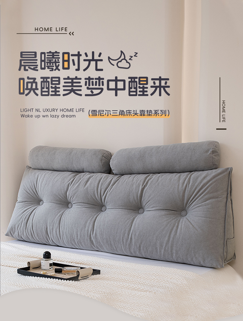 (总)碧尔家居 2025新款榻榻米床头靠枕大靠背卧室护腰靠垫可拆洗沙发双人软包三角玉米绒带头枕,米白,牛仔蓝,银灰