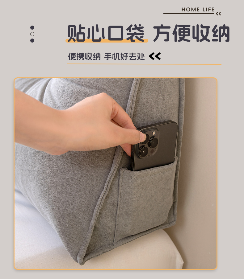 (总)碧尔家居 2025新款床头靠垫三角床上靠枕卧室榻榻米软包双人大靠背免拆洗,米黄,浅粉,浅蓝,深灰,银灰