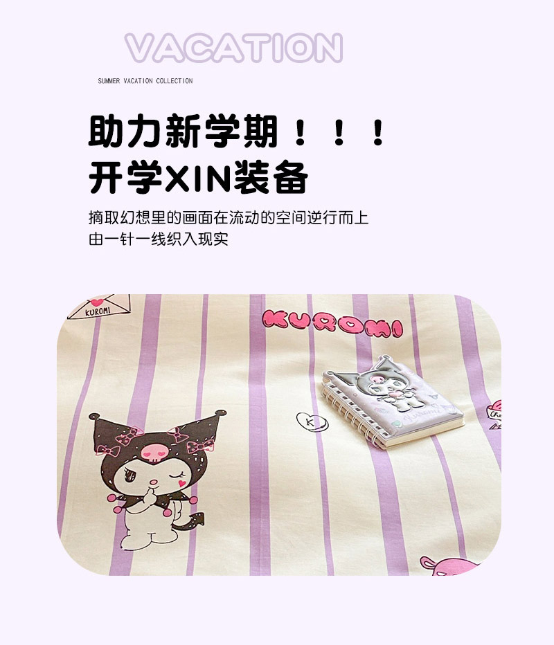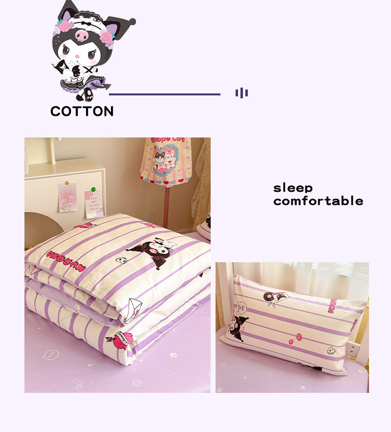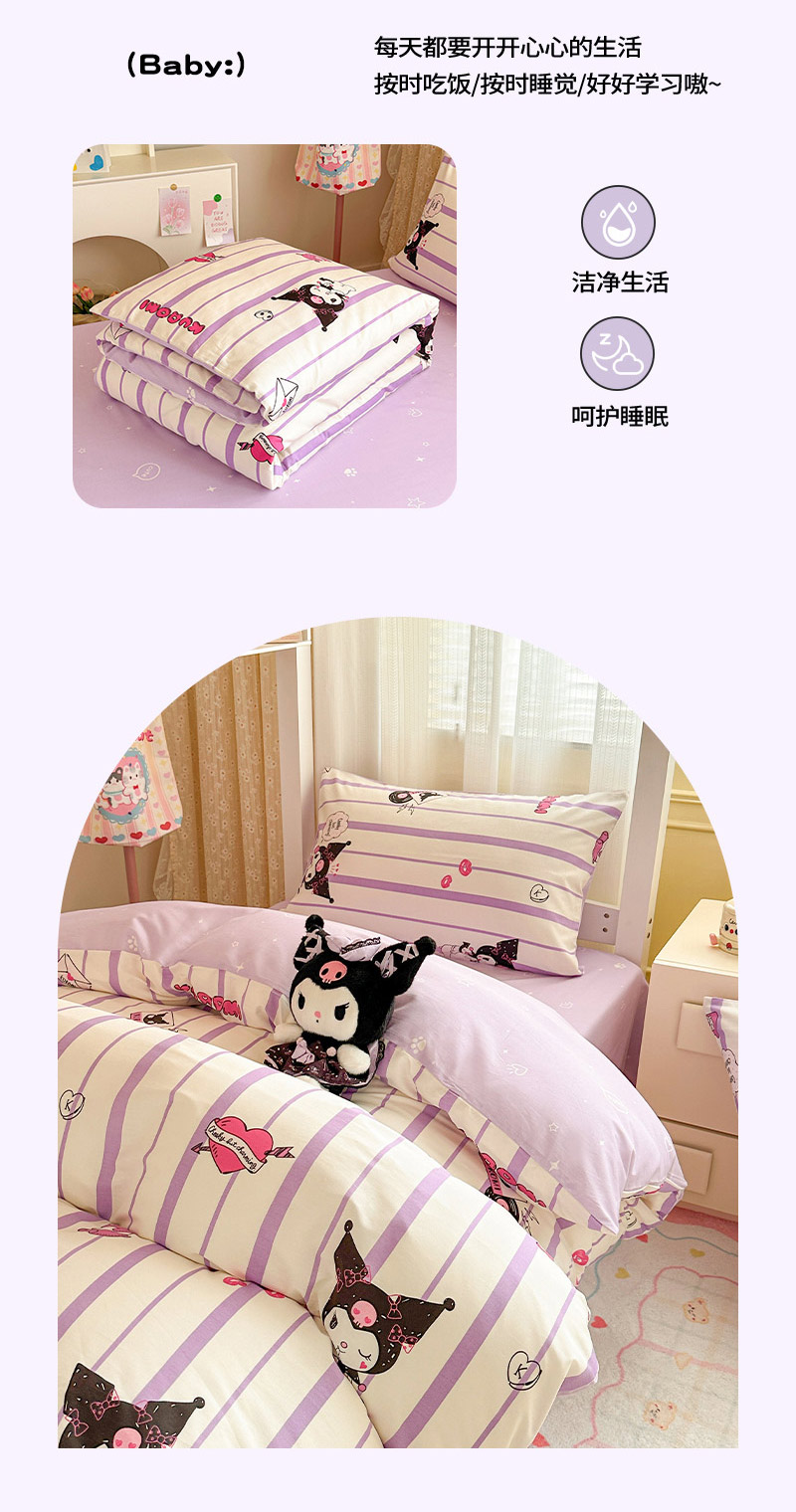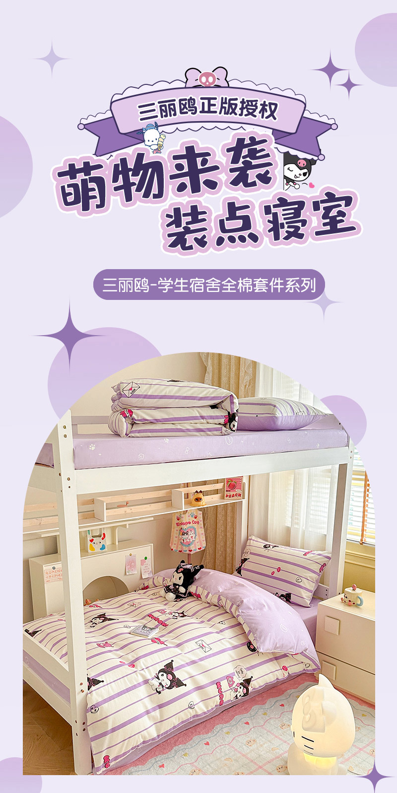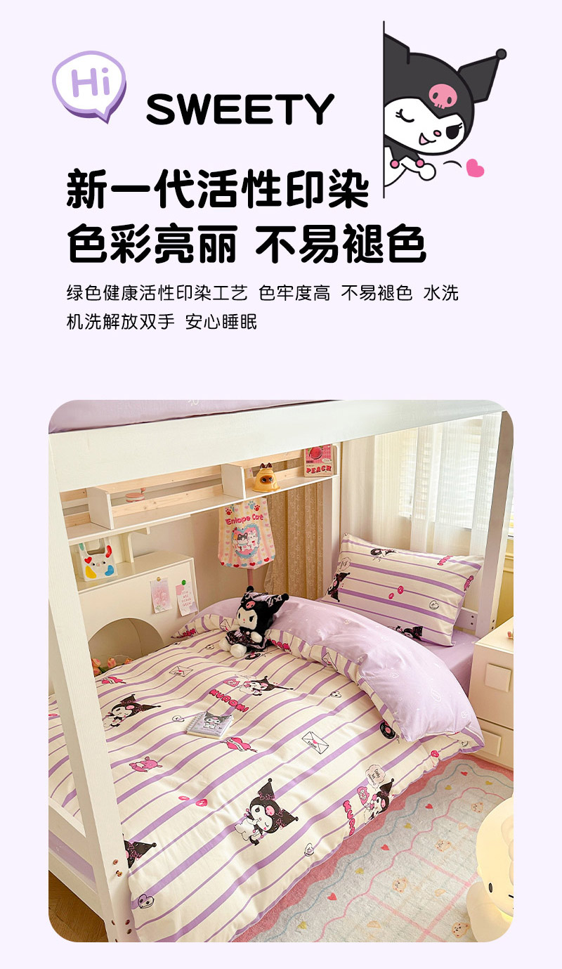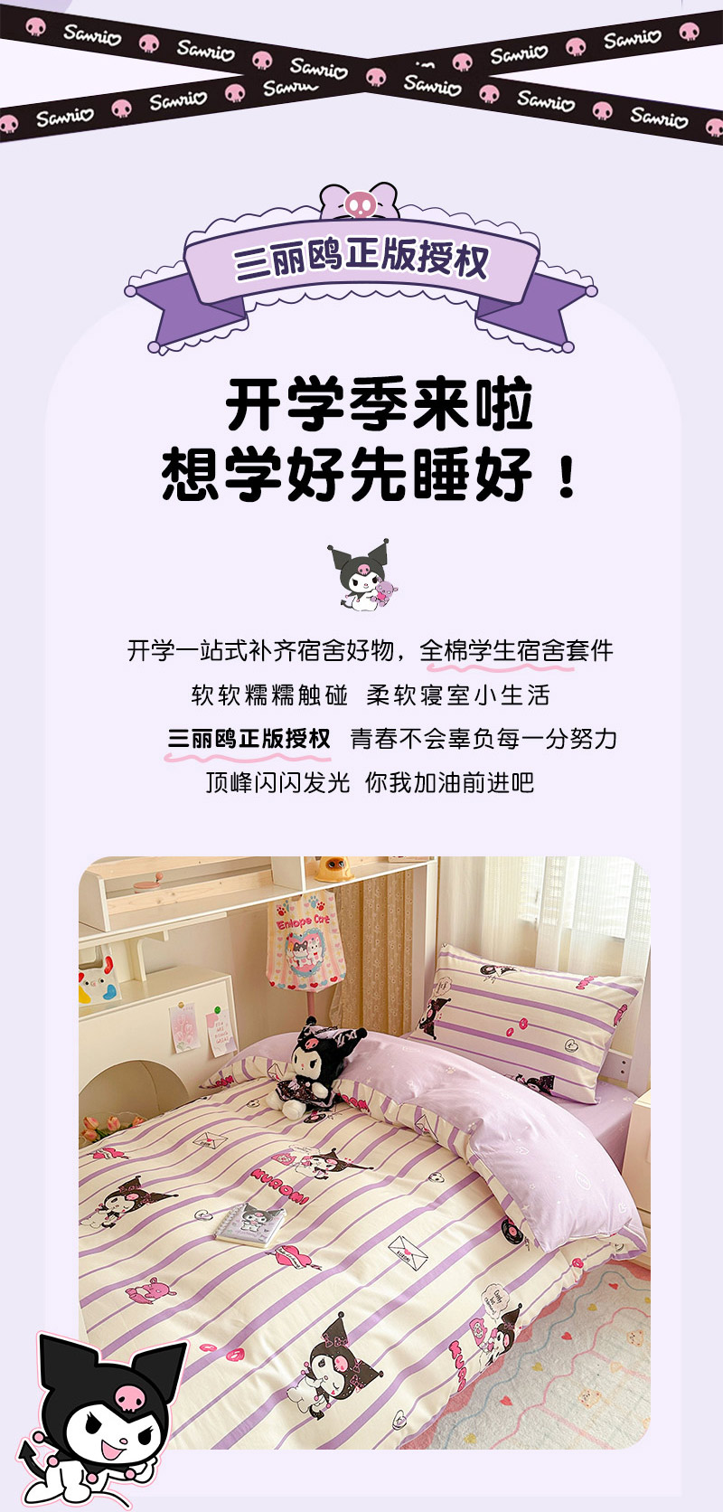 当前位置: 91家纺网 > 商品网购 > 床品套件 > 四件套 > 全棉普通四件套 > 蓝邻家纺 2024新款三丽鸥正版授权学生宿舍全棉印花四件套 米酷紫