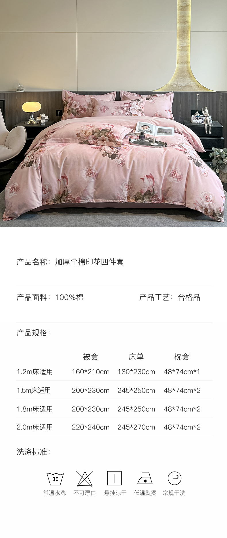商品名称:格里芬家纺 2025新款花卉系列全棉加厚磨毛数码印花四件套(控价劵后标准208起) 倾城花恋