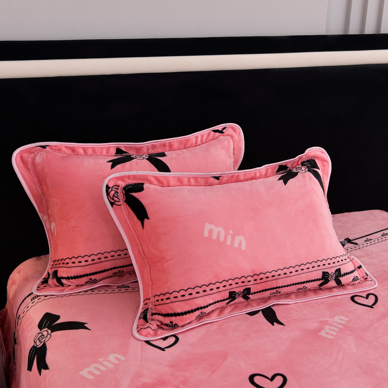 千嘻汇 2025新款8斤牛奶绒金貂法莱绒床裙款保暖绒四件套 温婉花语粉,温婉花语粉