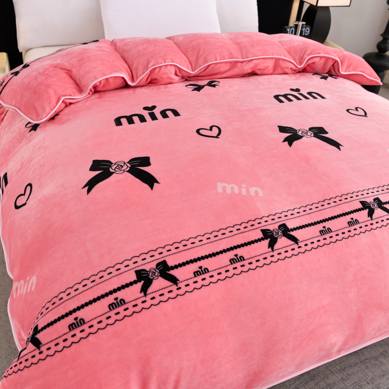 千嘻汇 2025新款7斤牛奶绒金貂法莱绒床裙款保暖绒四件套 情意绵绵