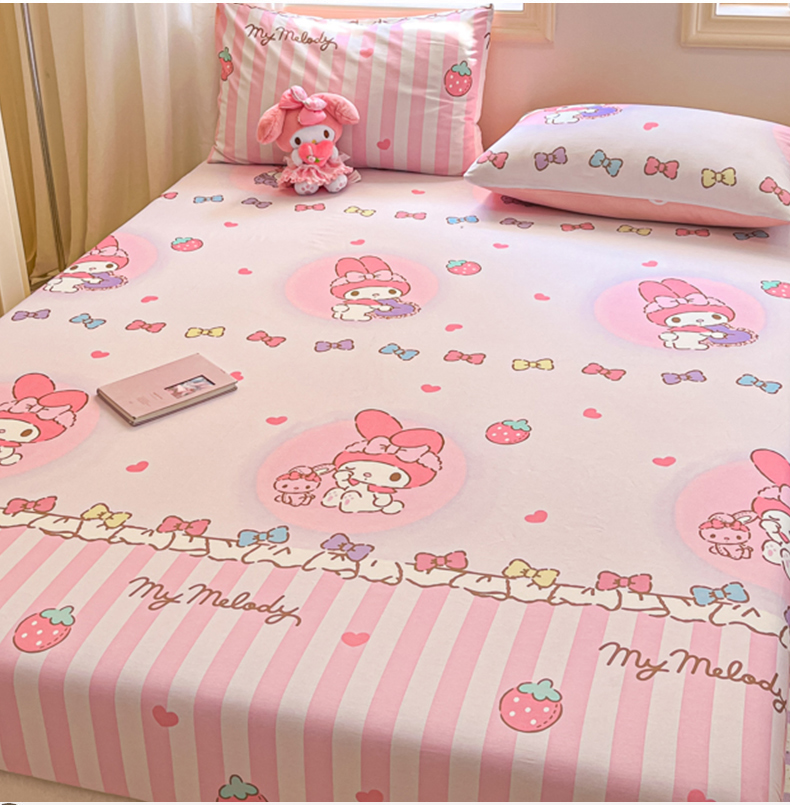 博雅 2024新款三丽鸥卡通系列全棉印花床笠 草莓条纹美乐蒂