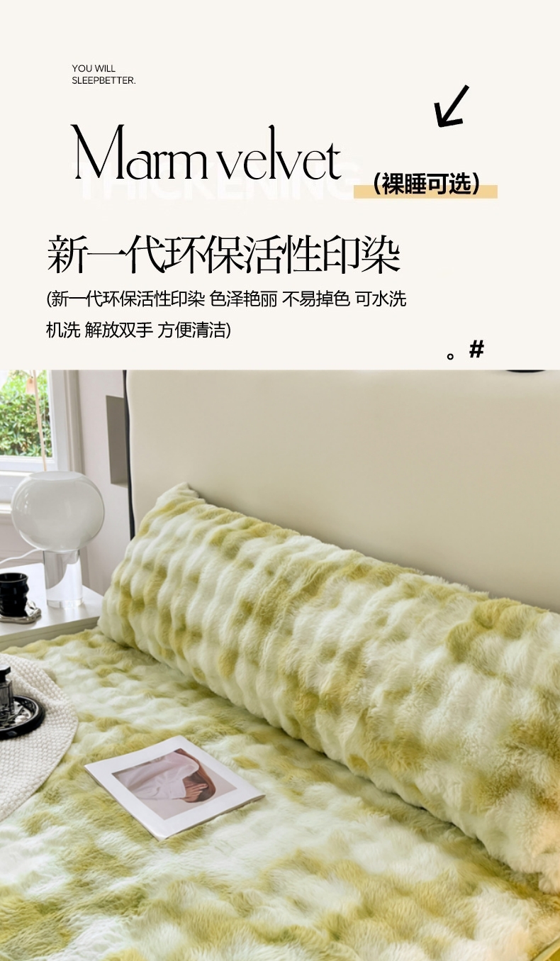 商品名称:圣比熊 2025新款兔毛绒双人枕套牛奶绒加长枕芯套雪花绒枕头套 梦幻果绿