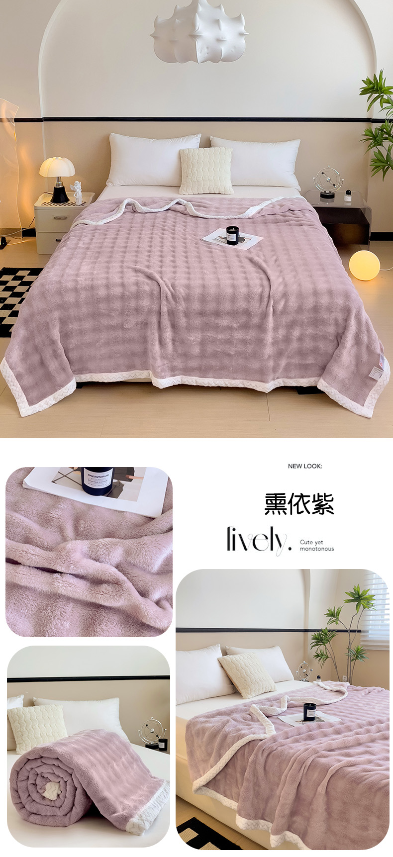 锦禾穗 2024毛毯新款仿兔毛泡泡绒毛毯空调毯直播爆款跨境包边 熏依紫压真空