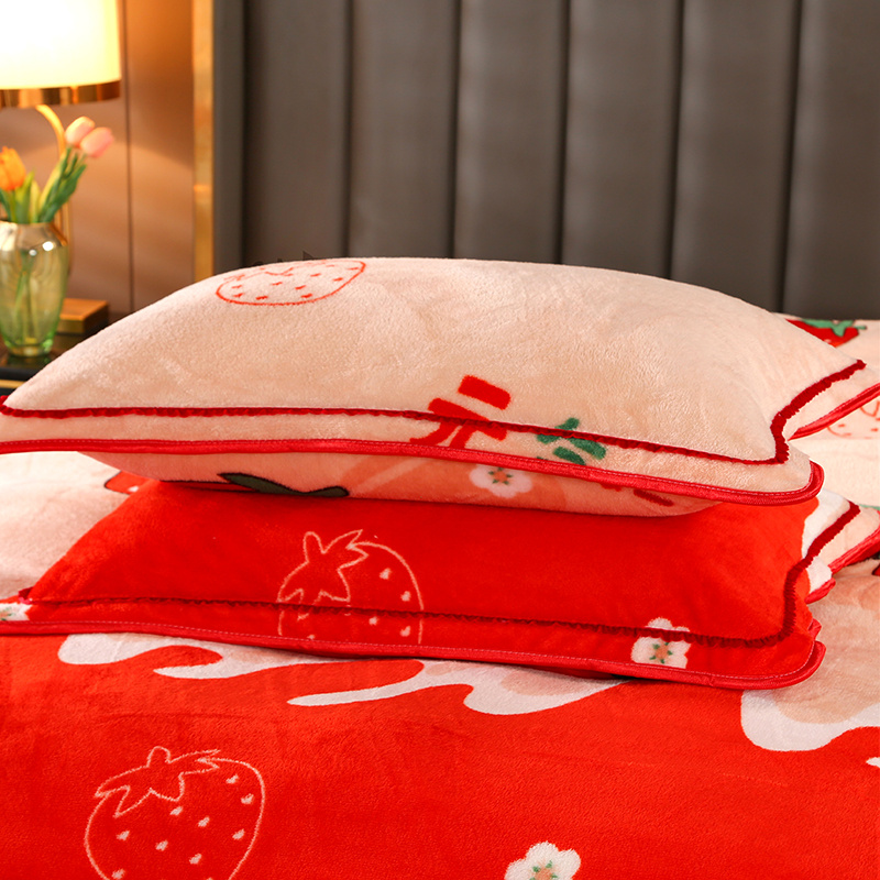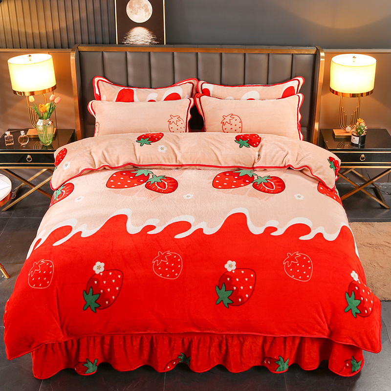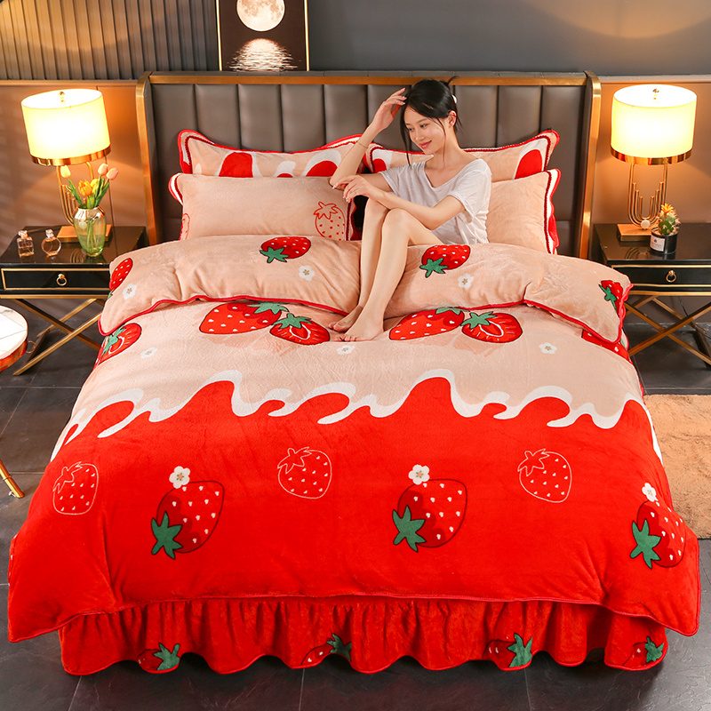 商品名称:爱洛 2024新款日产过万爆款印花牛奶绒四件套 奶油草莓