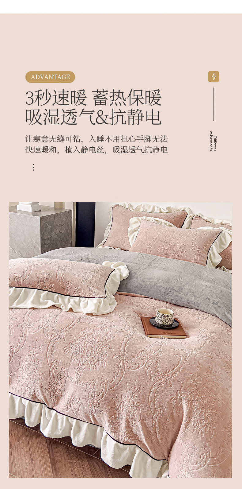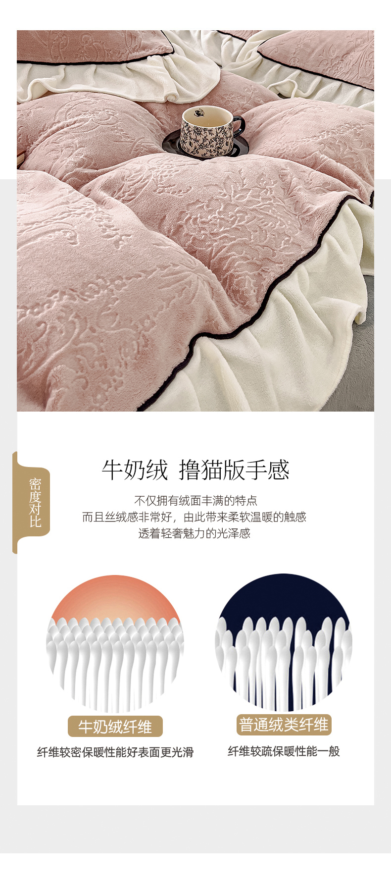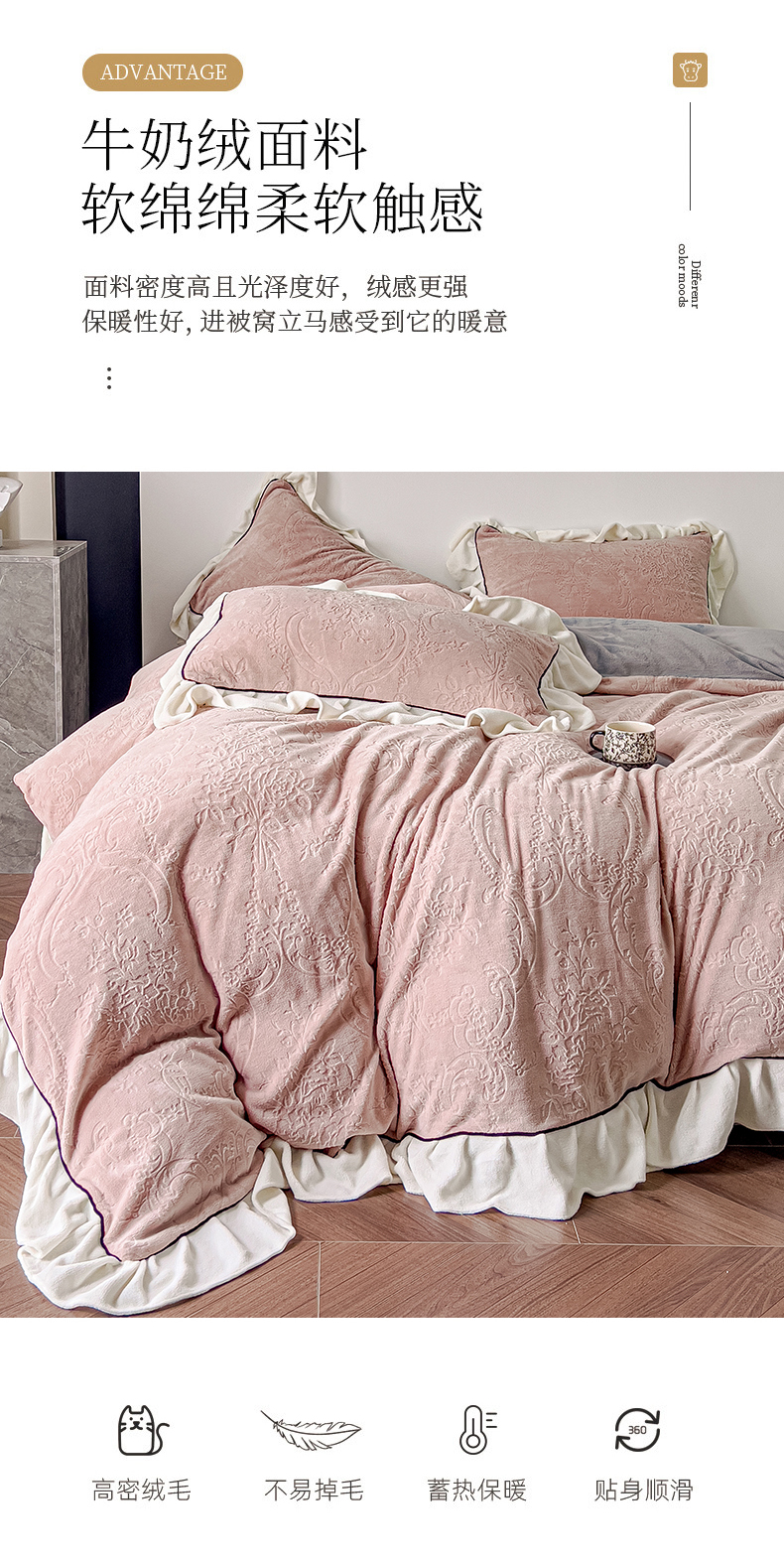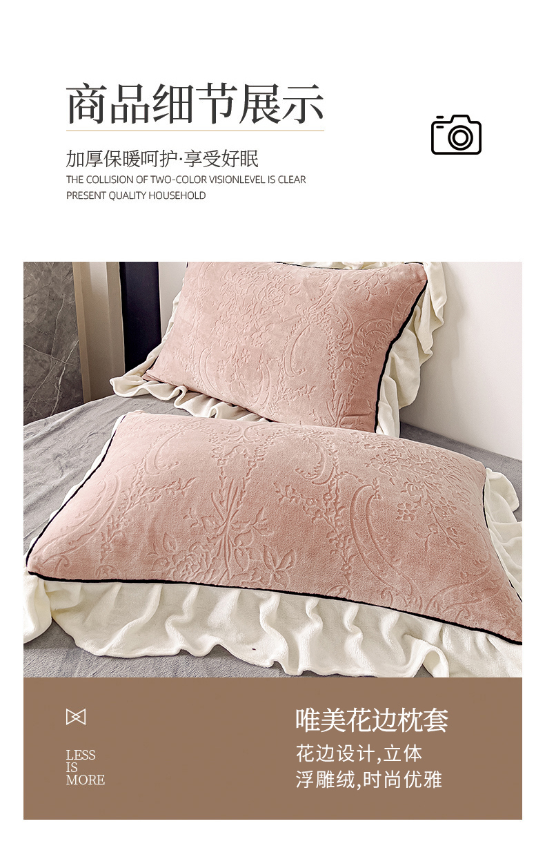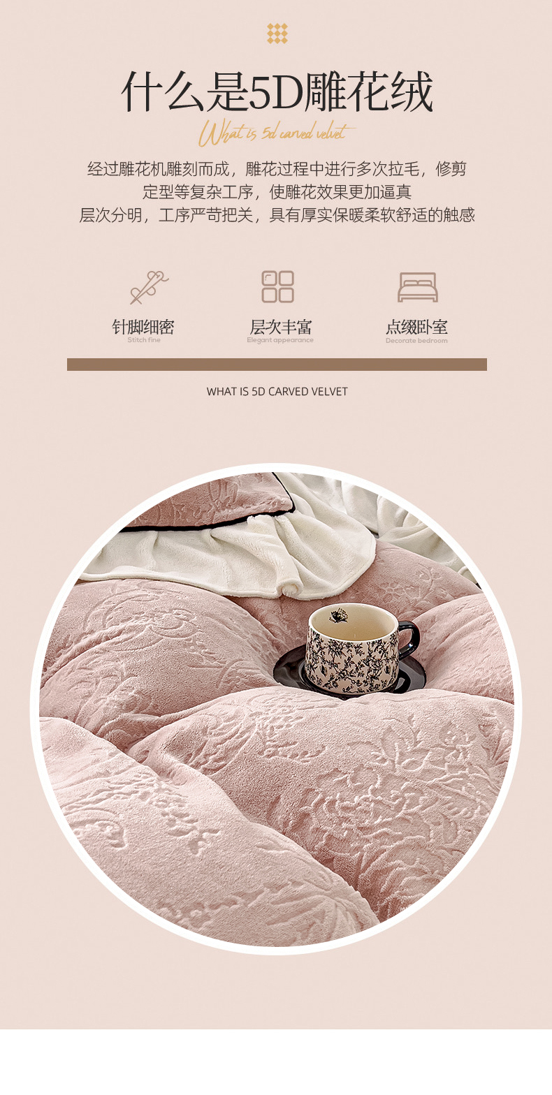 当前位置: 91家纺网 > 商品网购 > 床品套件 > 四件套 > 牛奶绒四件套 > KA家纺 2025冬季新款雕花牛奶绒洛丽塔系列四件套-场景二 洛丽塔豆沙