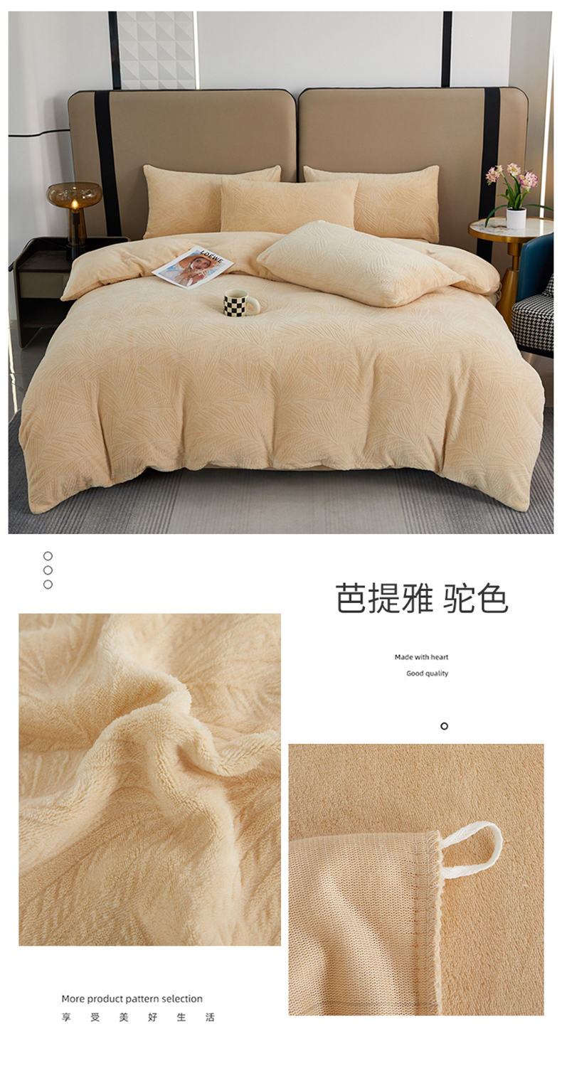 商品名称:青螺家纺 2024新款纯色雕花牛奶绒四件套婴儿级烂花立体牛奶绒四件套 芭提雅-驼色