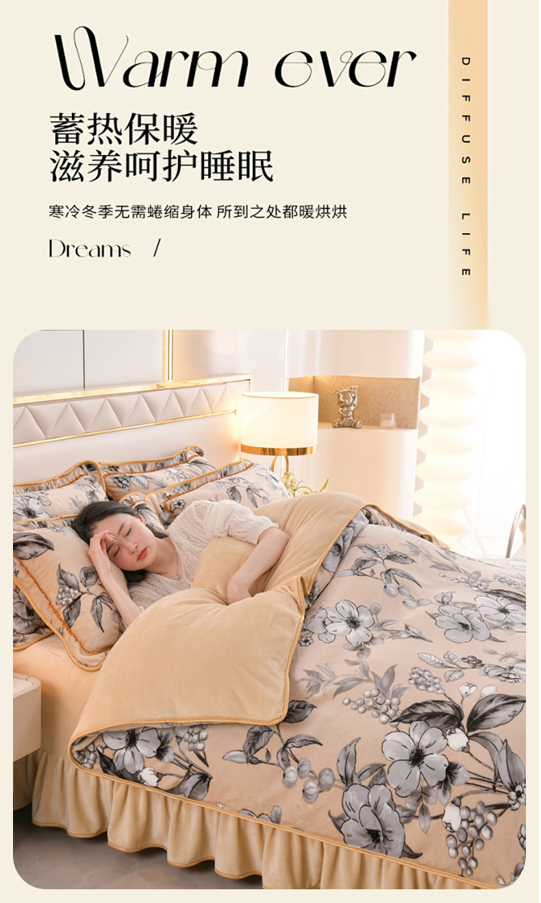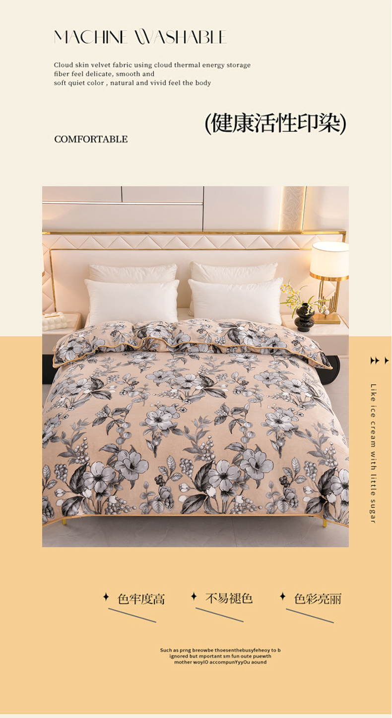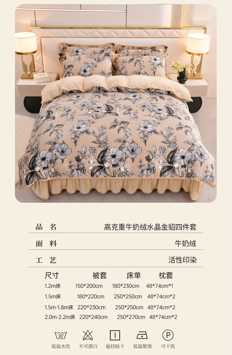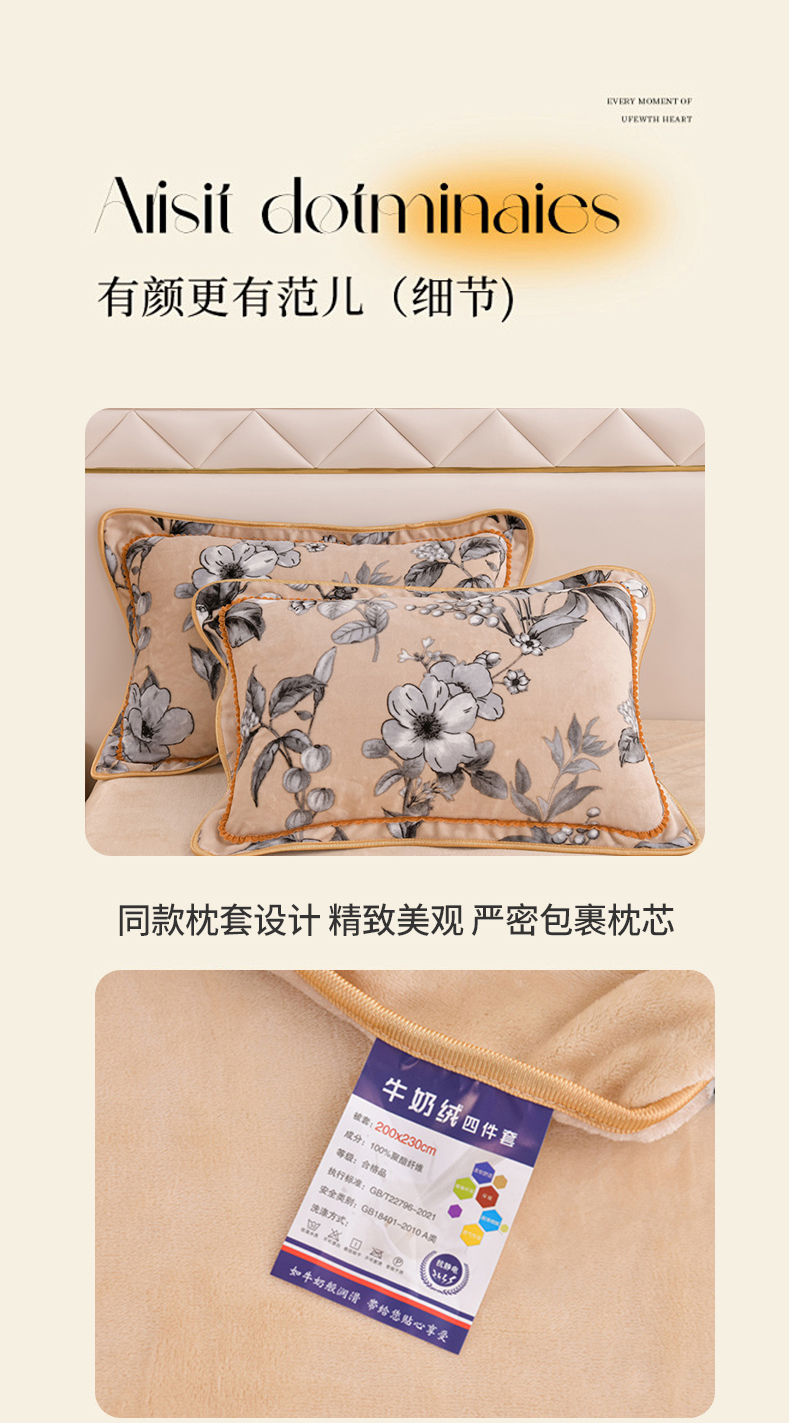 当前位置: 91家纺网 > 商品网购 > 床品套件 > 四件套 > 牛奶绒四件套 > 芯诗曼2025新款8.5斤直播热款高克重牛奶绒法莱绒水晶金貂法莱绒四件套春华秋实