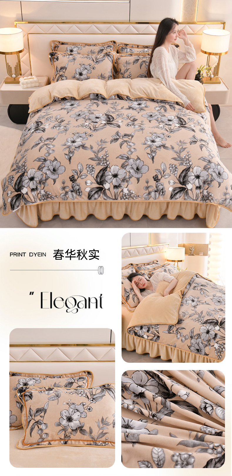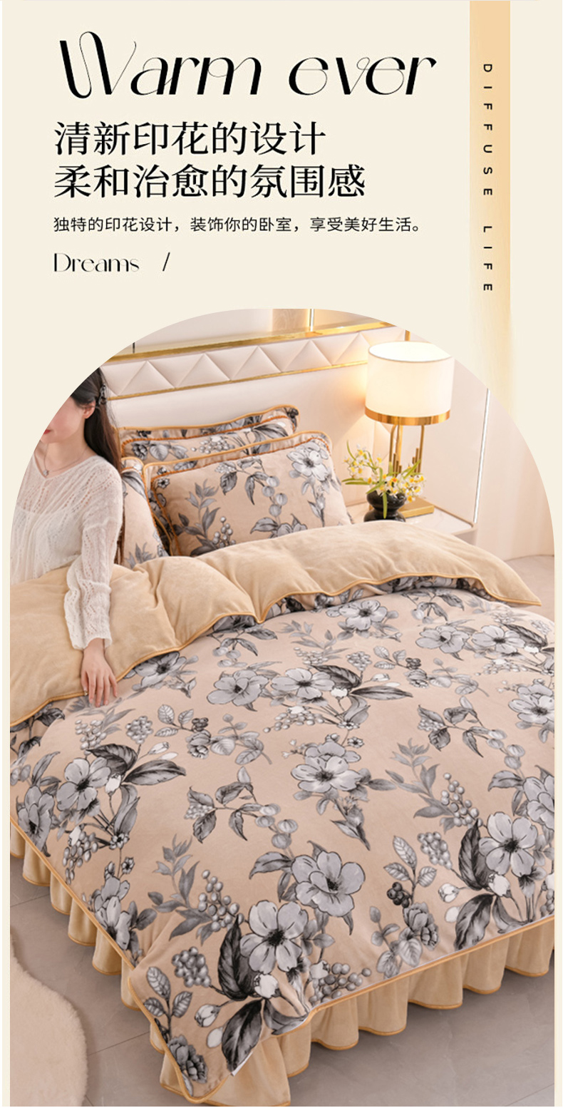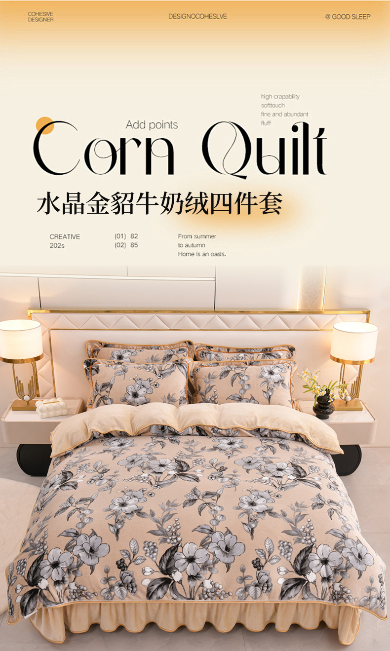 当前位置: 91家纺网 > 商品网购 > 床品套件 > 四件套 > 牛奶绒四件套 > 芯诗曼2025新款8.5斤直播热款高克重牛奶绒法莱绒水晶金貂法莱绒四件套春华秋实