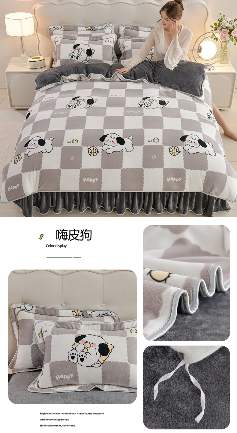 羽梦2025新款8.5斤牛奶法莱绒金貂法兰绒四件套直播爆款 嗨皮狗