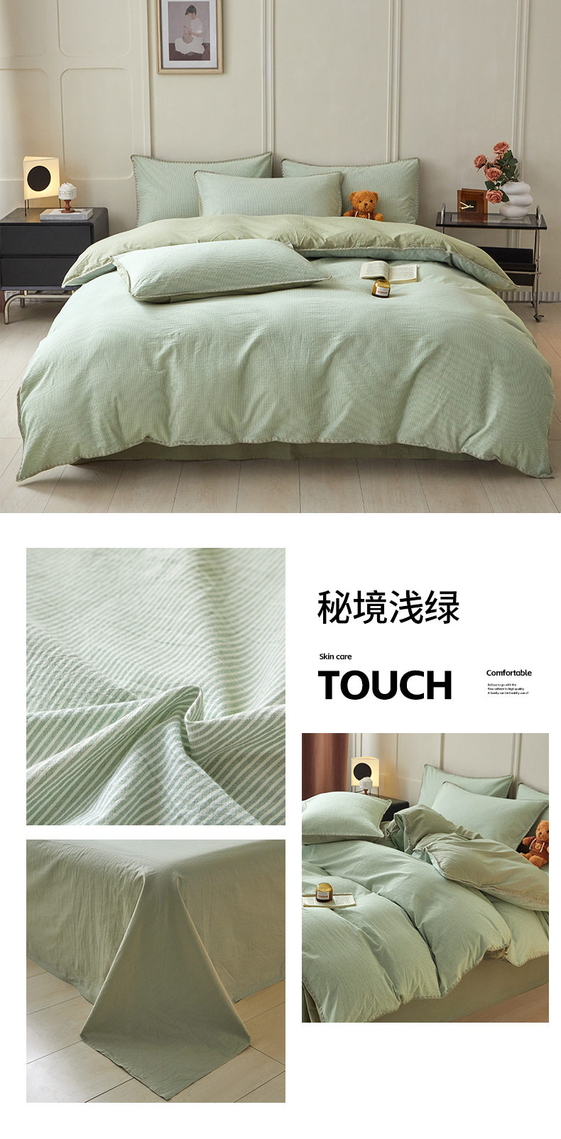 (总)吉象 2022新款全棉活性印花四件套-北欧风系列,马里奥,悉尼-豆沙,悉尼-绿
