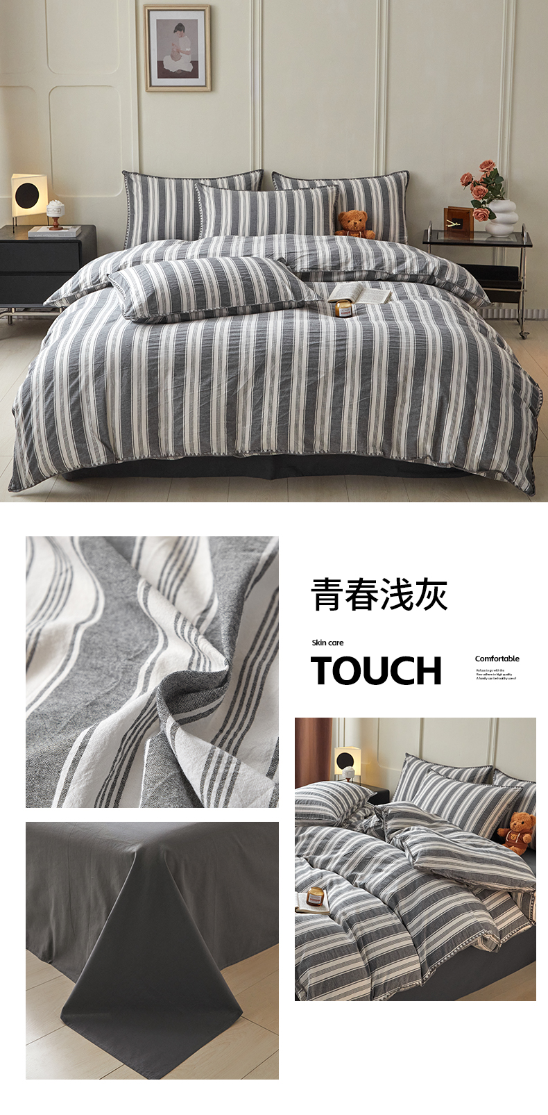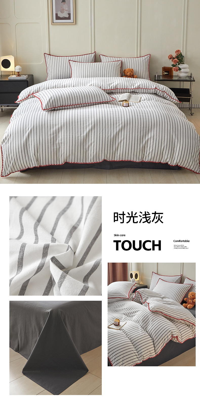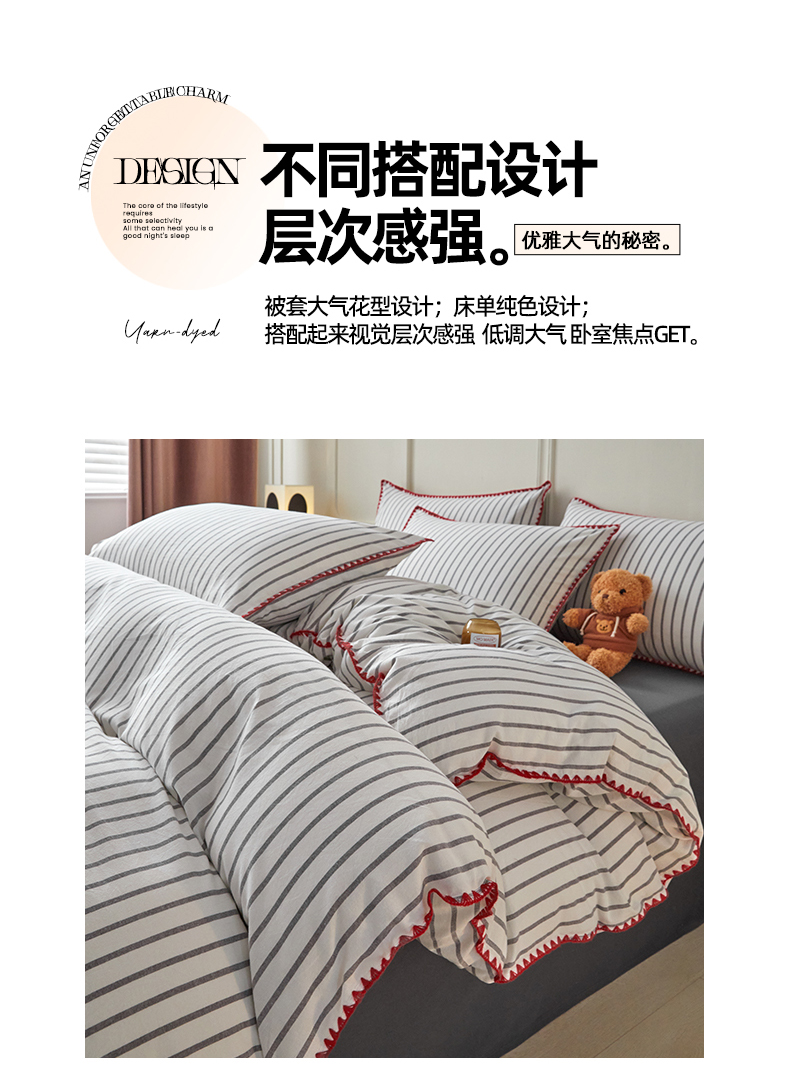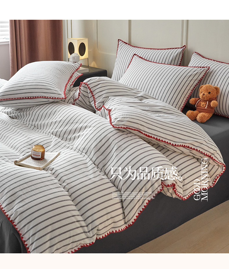 (总)吉象家纺 2024新款A类全棉色织水洗棉贝壳边三角针四件套