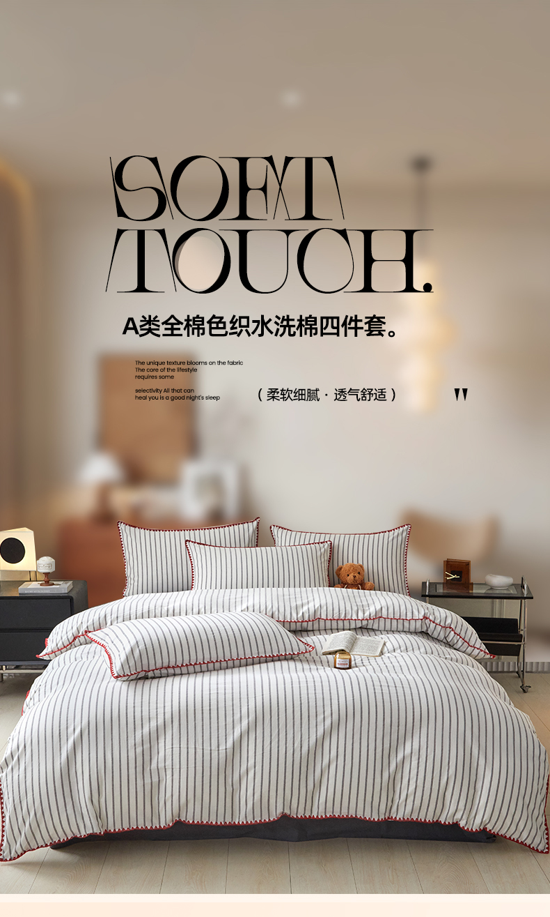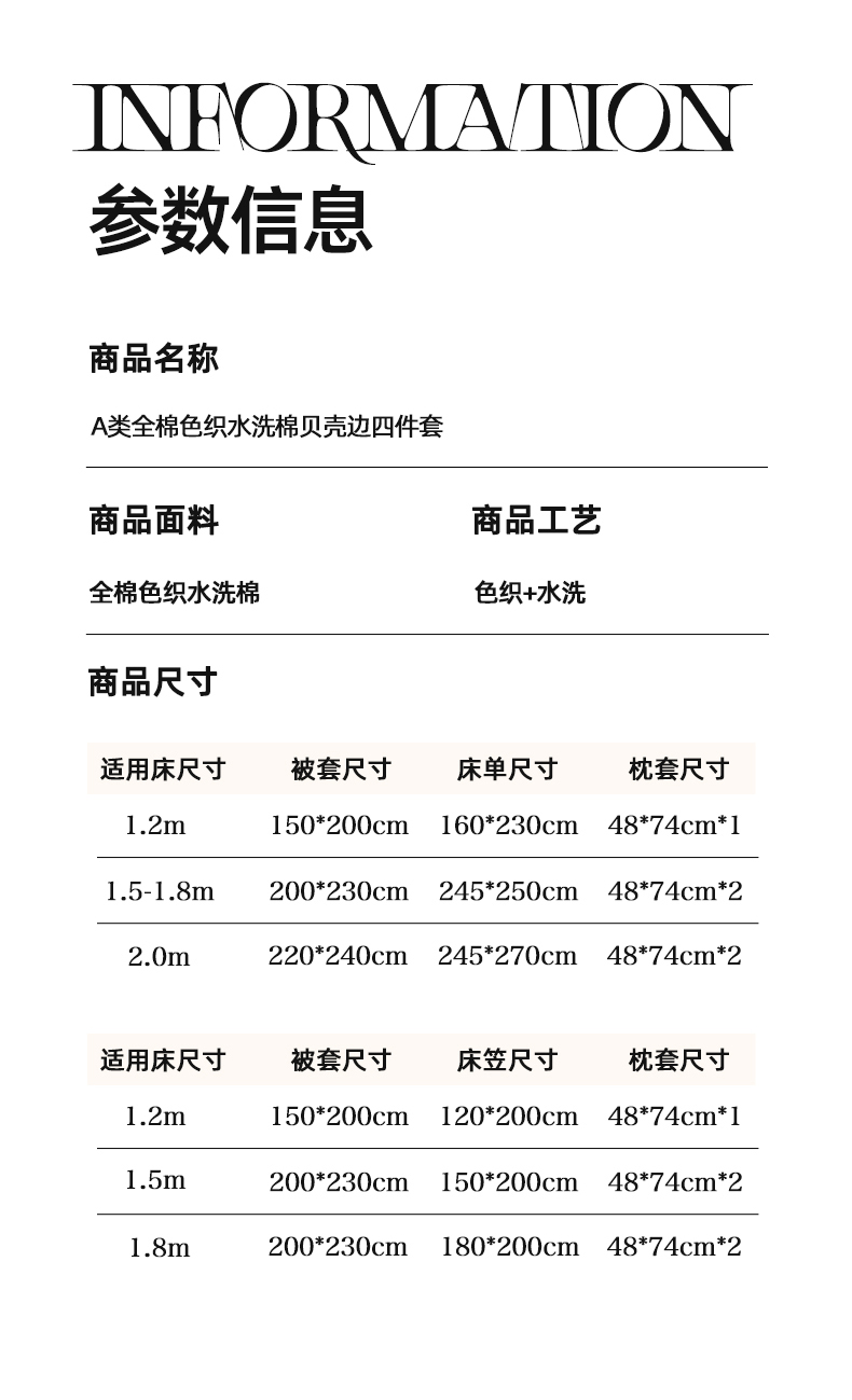 商品名称:(总)吉象家纺 2024新款A类全棉色织水洗棉贝壳边三角针四件套