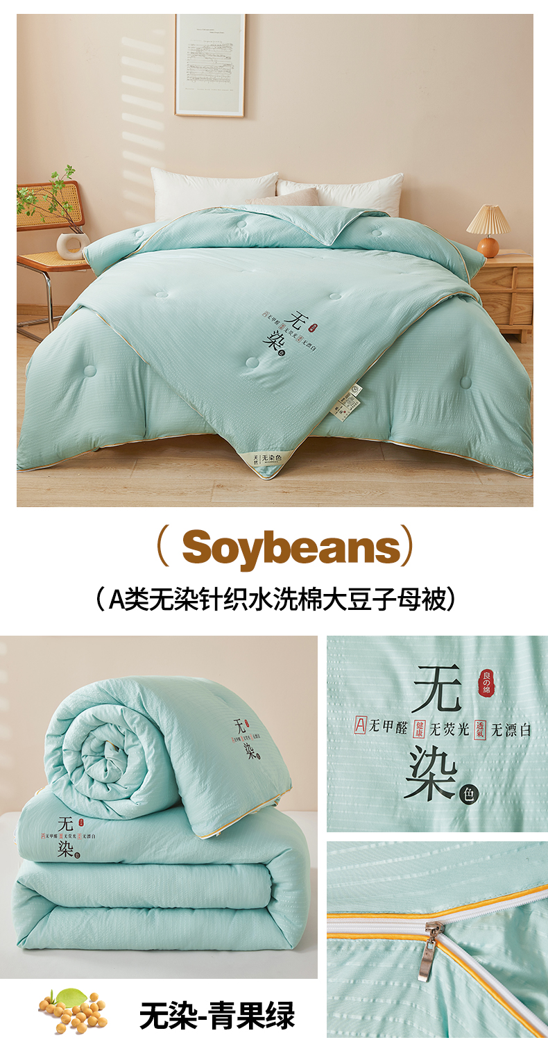 星航家纺 2025新款A类无染针织水洗棉大豆被子母被被子 无染-青果绿