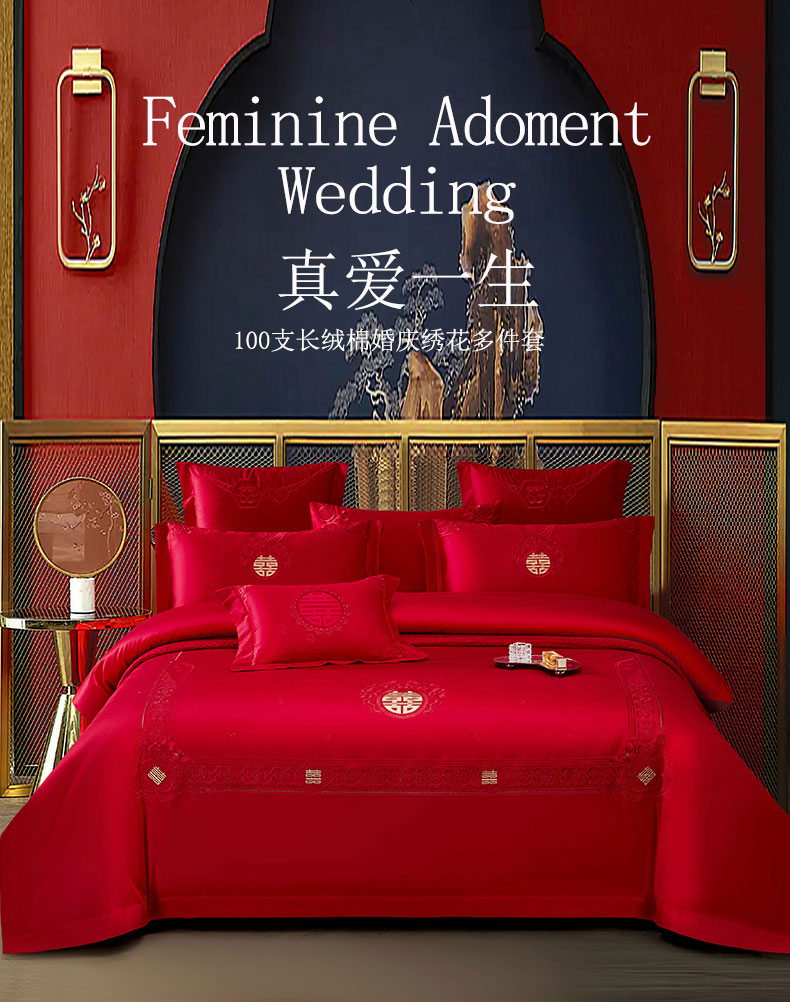 当前位置: 91家纺网 > 商品网购 > 床品套件 > 四件套 > 婚庆四件套 > 蒂爵 全棉纯棉长绒棉时尚新中式婚庆四件套多件套 真爱一生