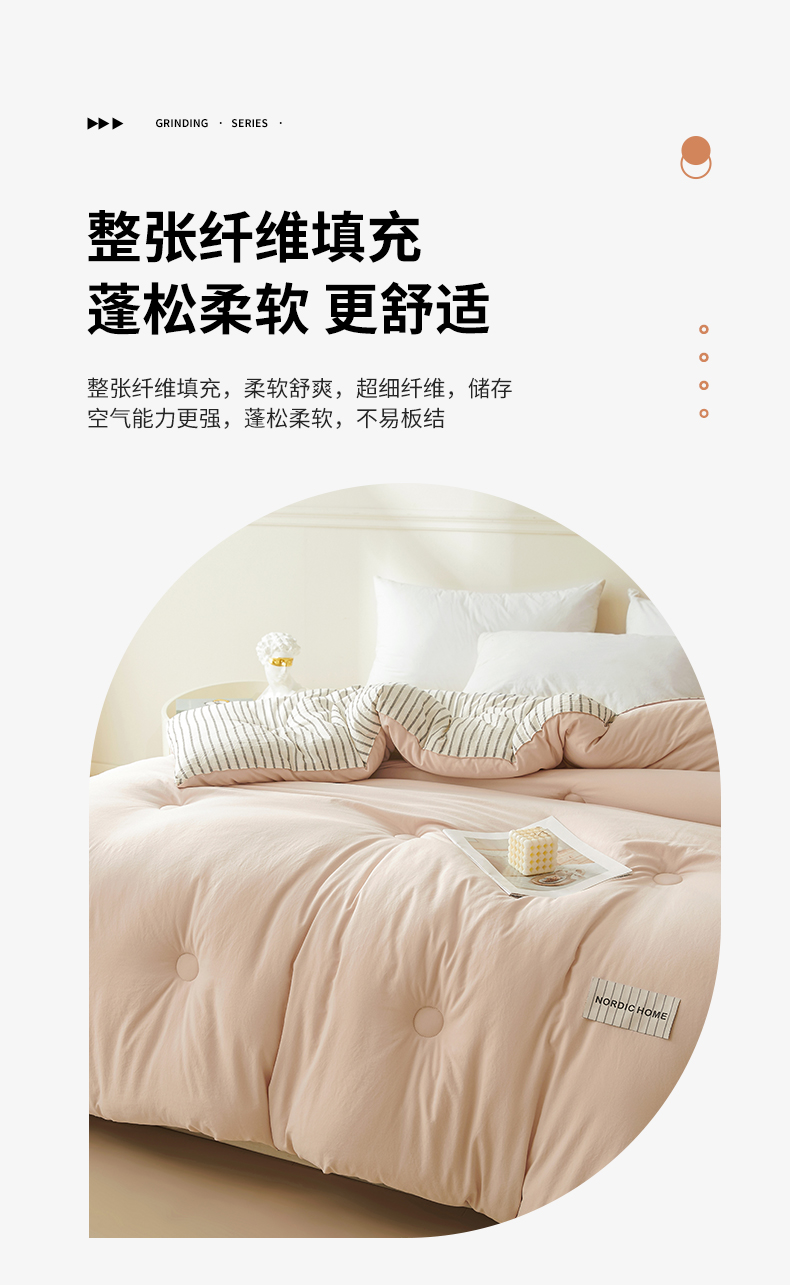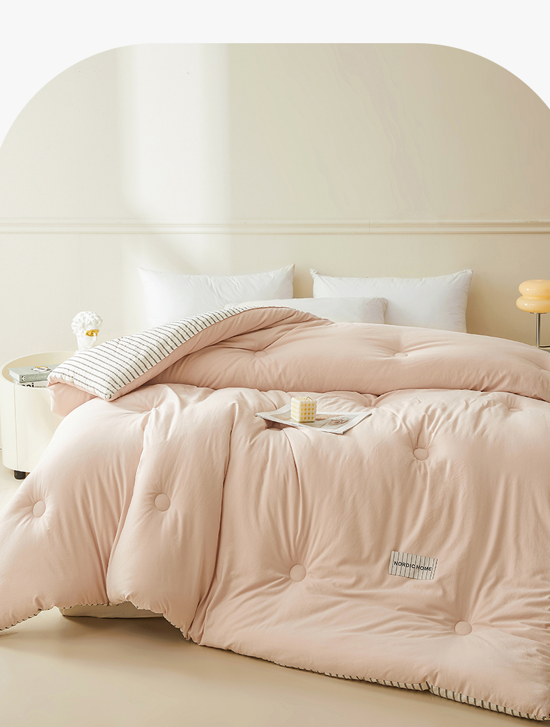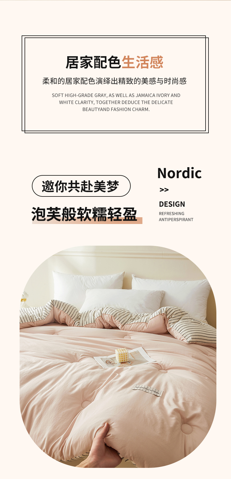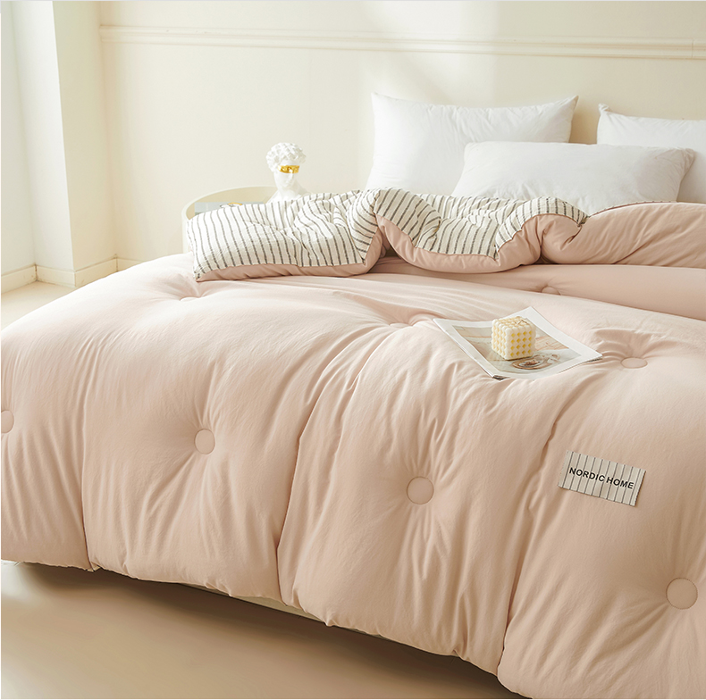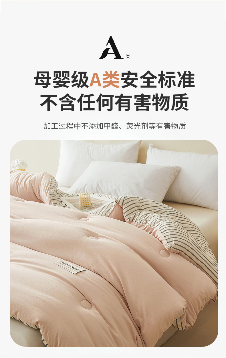 • 91家纺网 家纺一手货源 找家纺 荔禾家居 2024新款A类素色条纹双拼大豆被子被芯 条纹-盈盈粉