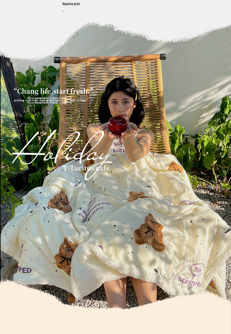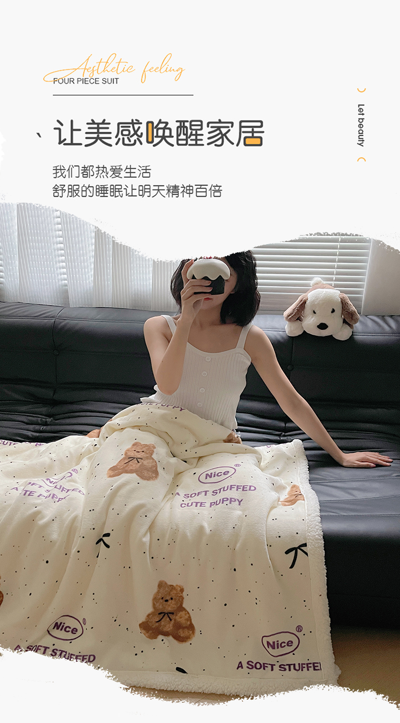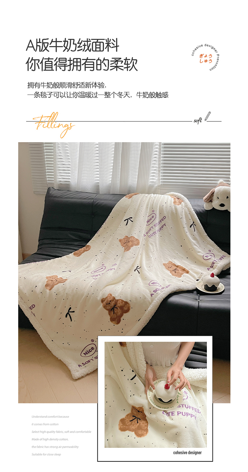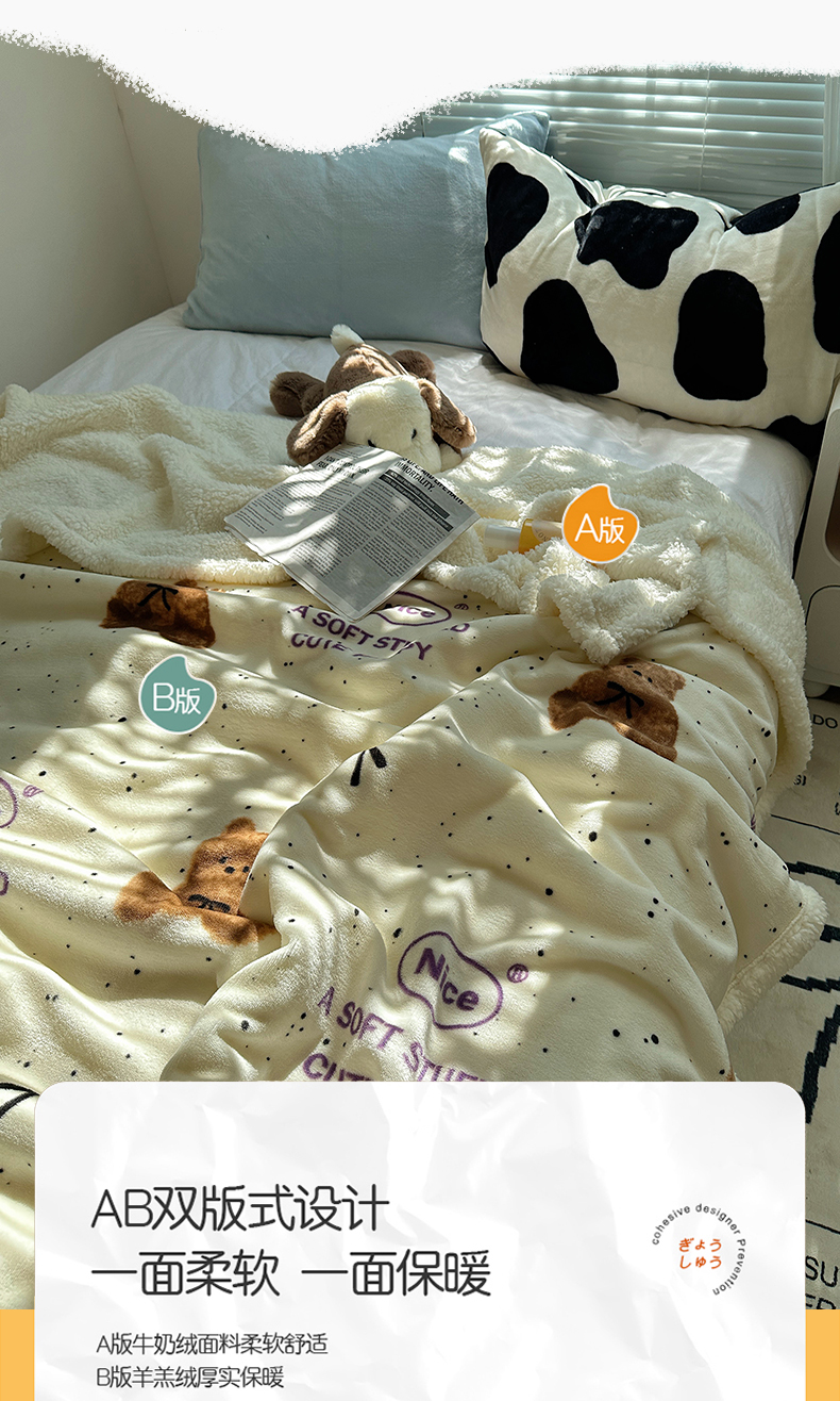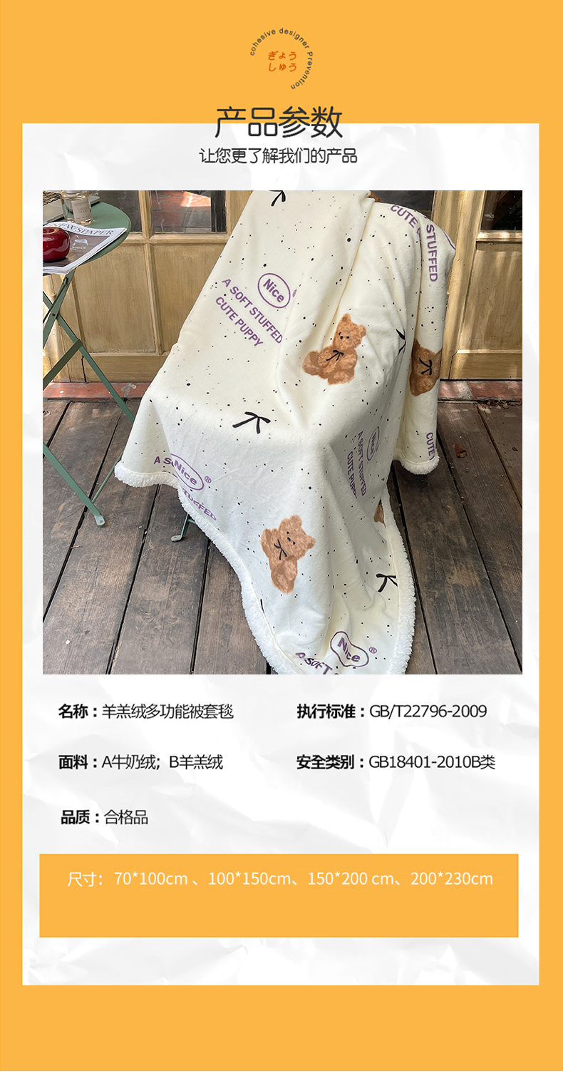 萝莉家纺 2024秋冬新款多功能加厚牛奶绒羊羔绒多功能毛毯 毛绒熊
