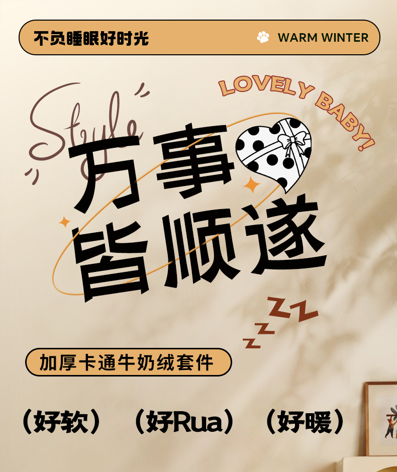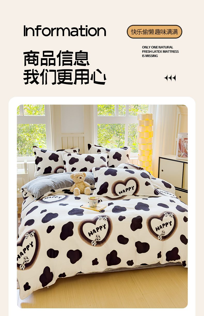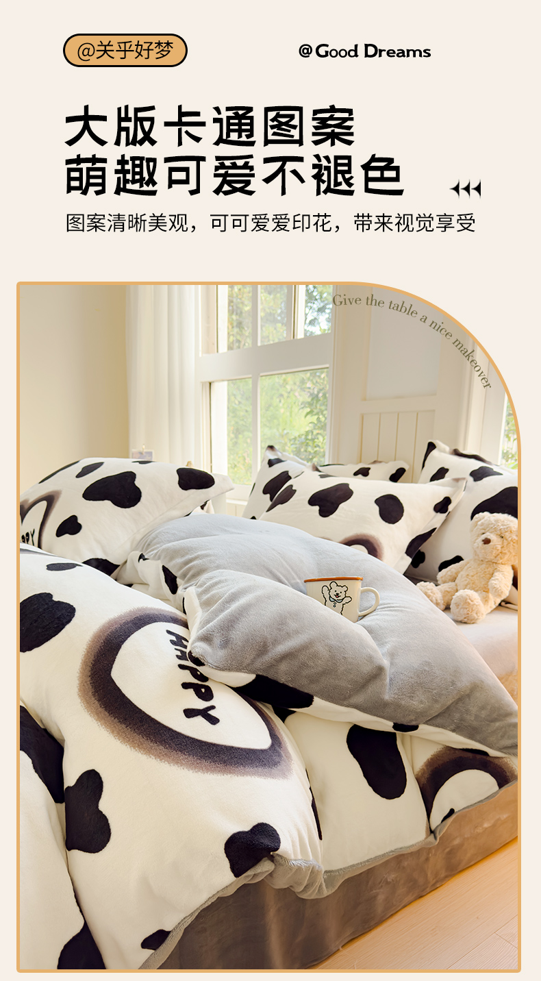 当前位置: 91家纺网 > 商品网购 > 床品套件 > 四件套 > 牛奶绒四件套 > 狂想家 2025新款加厚牛奶绒卡通印花四件套 万事顺遂