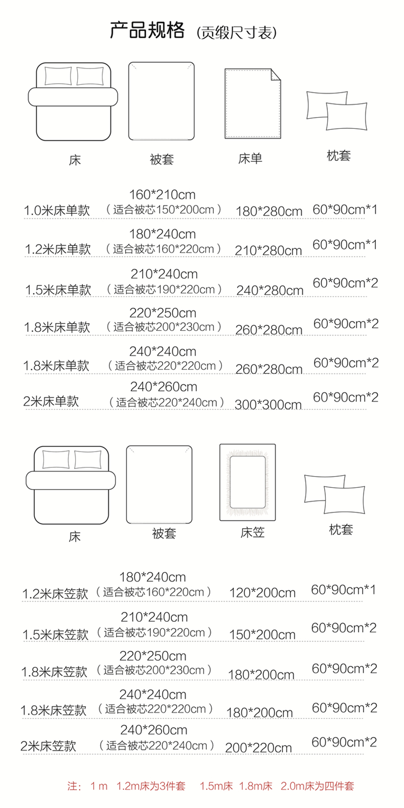 1.2米床三件套:被套180*240,床单210*280,枕套60*90 | ¥159.00 |