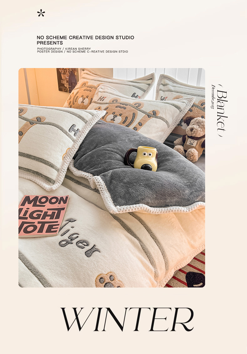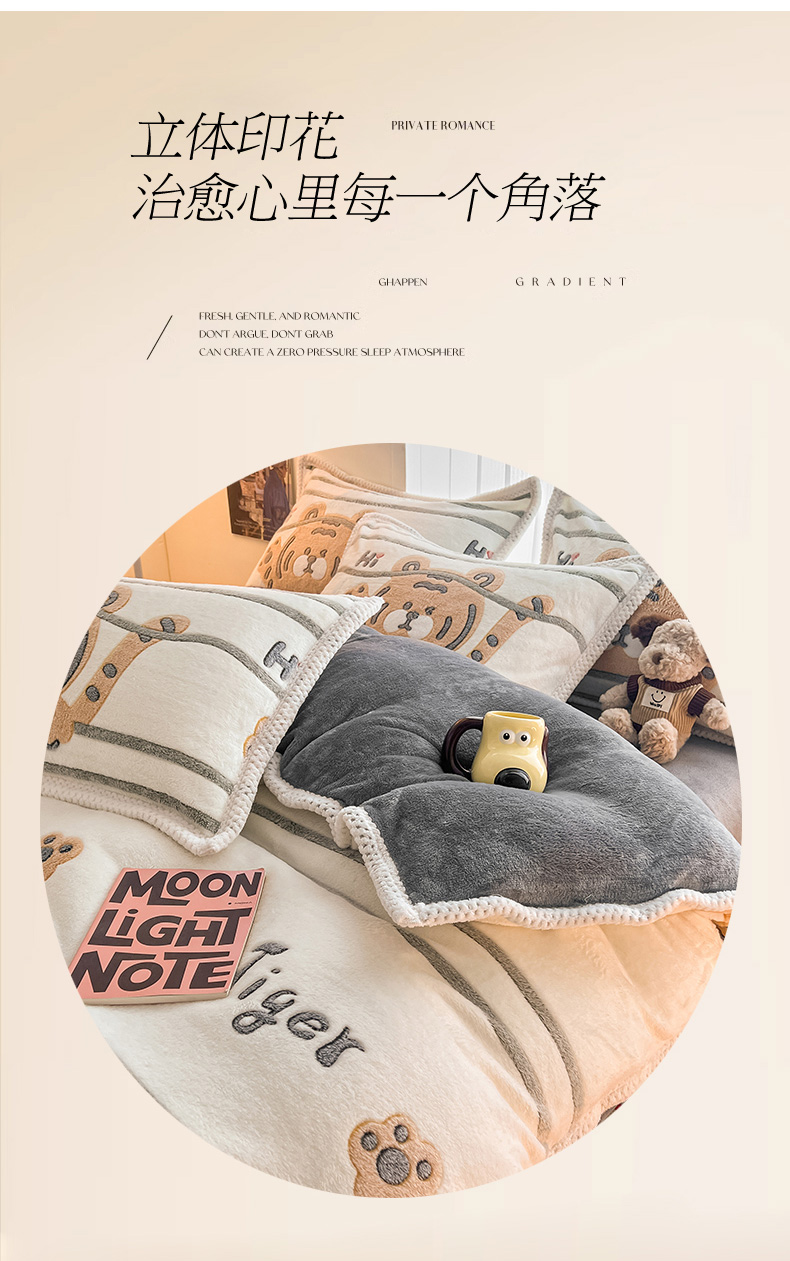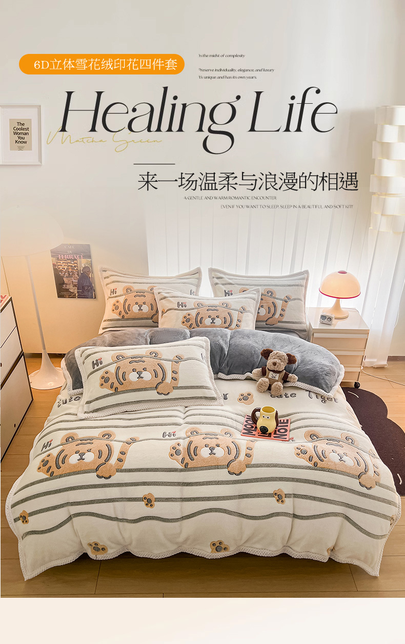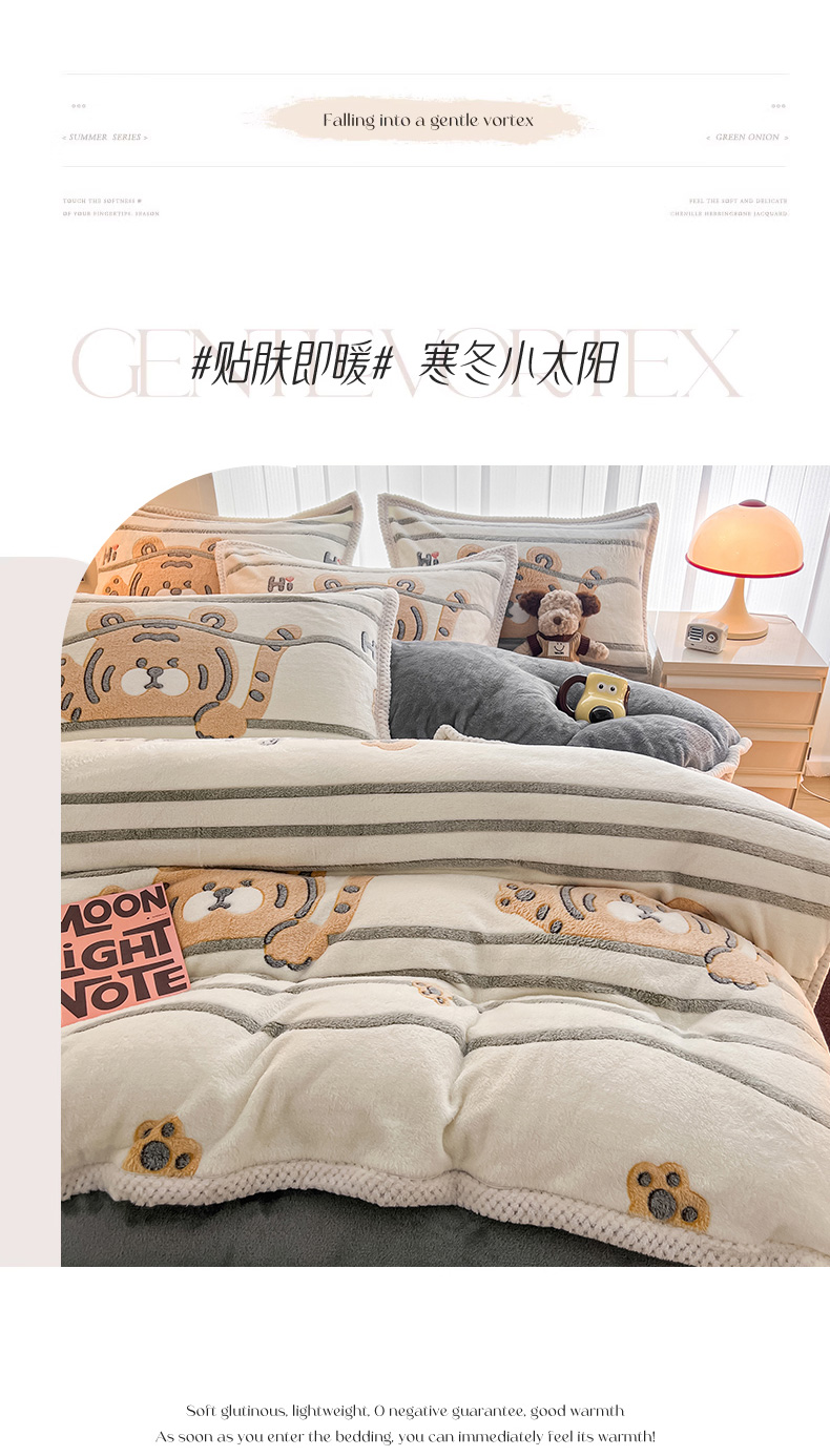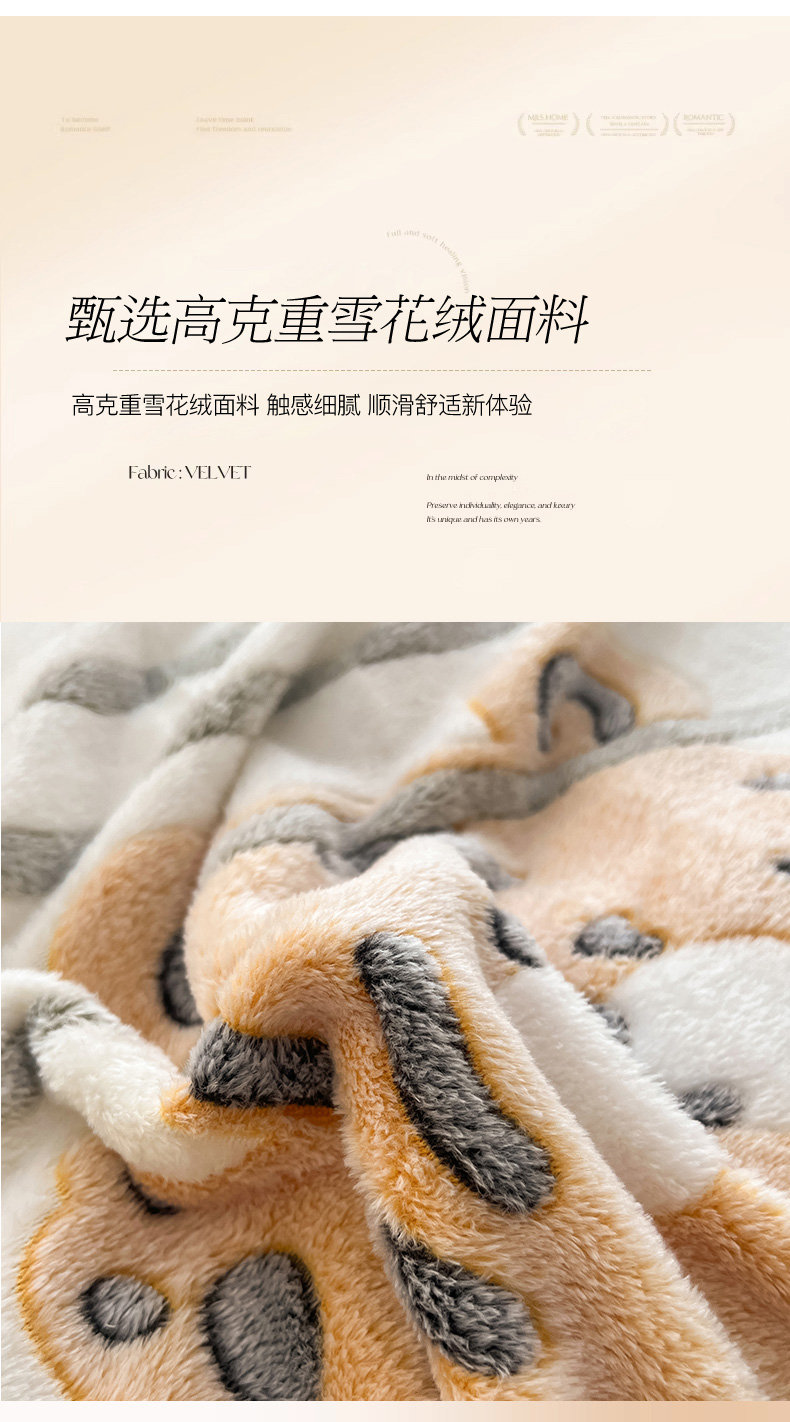 当前位置: 91家纺网 > 商品网购 > 床品套件 > 四件套 > 其它四件套 > 倾慕家纺 2024新款加厚保暖6D立体雪花绒系列-四件套 欢乐小虎