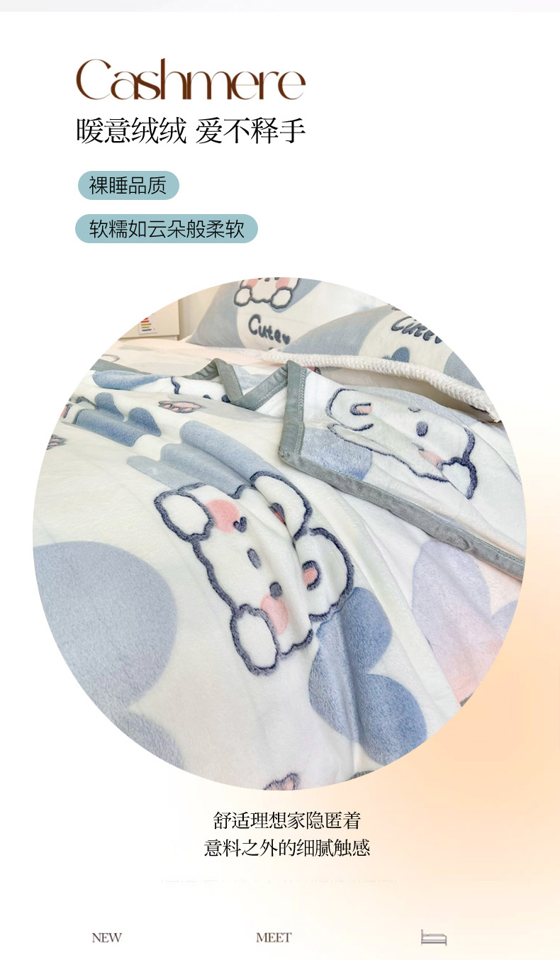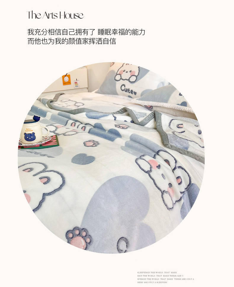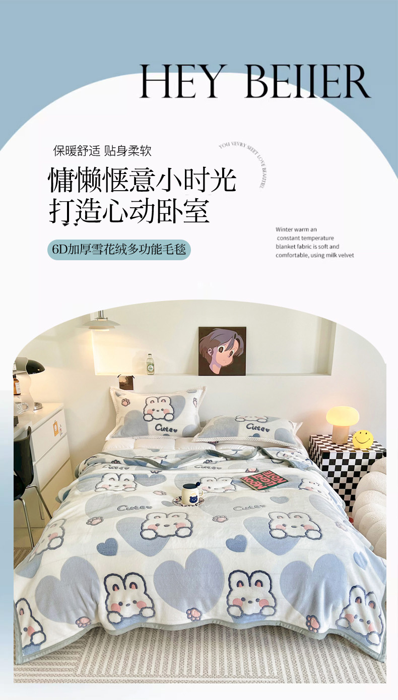 倾慕家纺 2024新款加厚保暖6D立体雪花绒系列-毛毯 波波兔