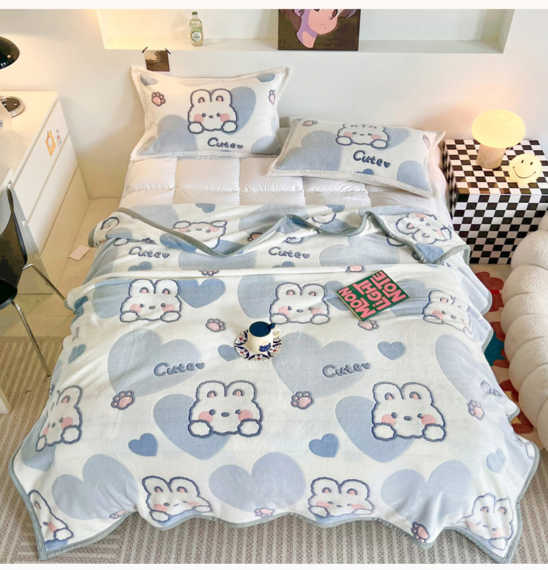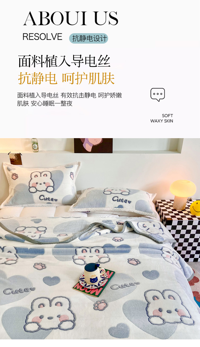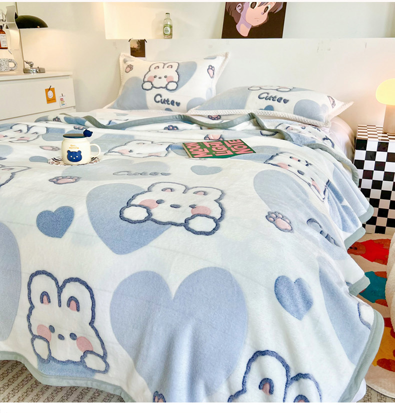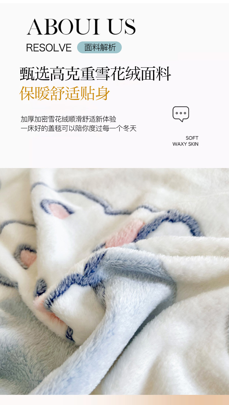 倾慕家纺 2024新款加厚保暖6D立体雪花绒系列-毛毯 波波兔