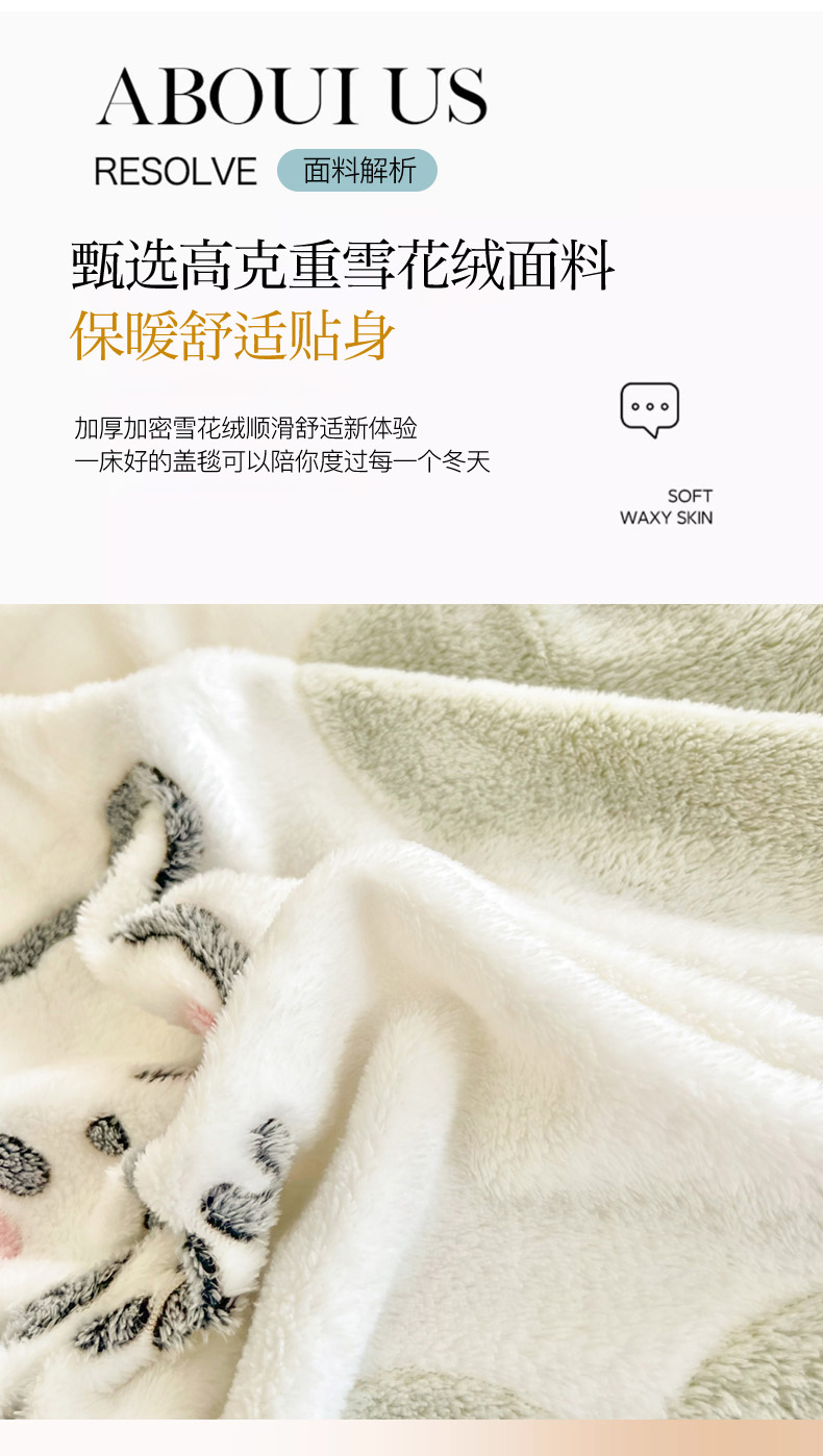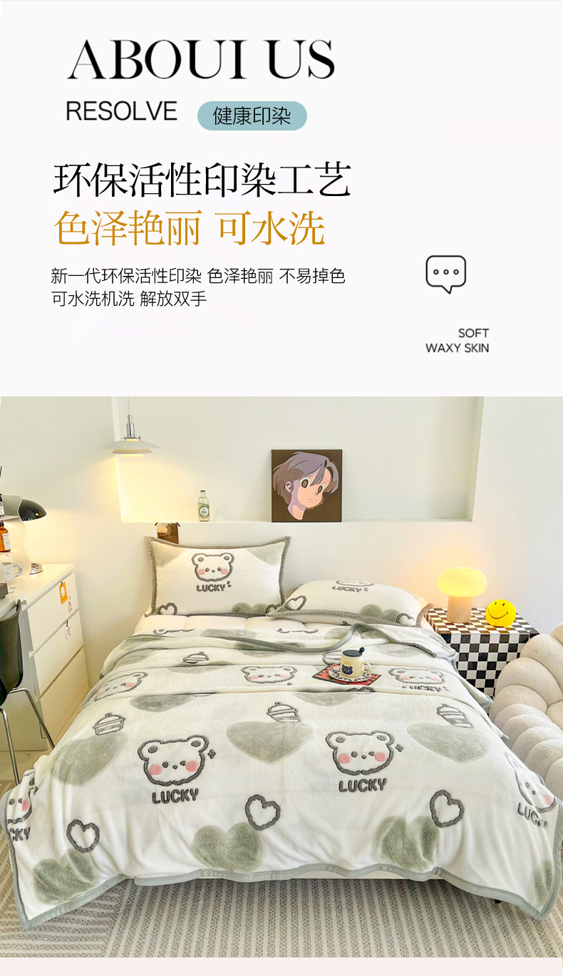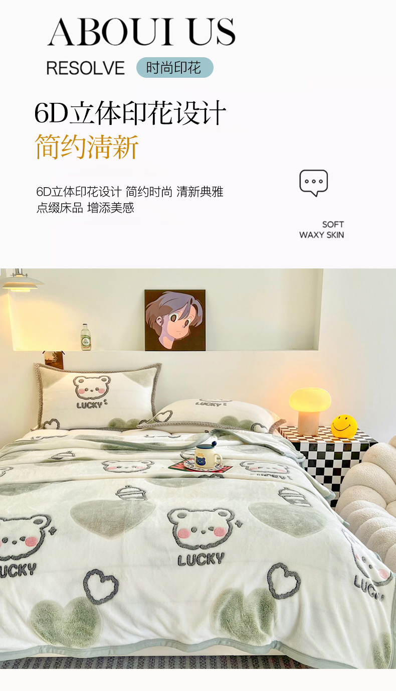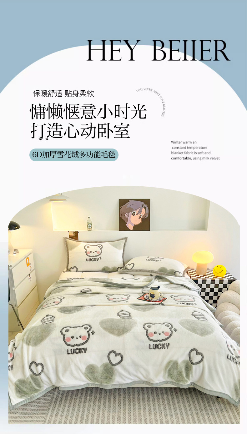 倾慕家纺 2024新款加厚保暖6D立体雪花绒系列-毛毯 奶茶小熊