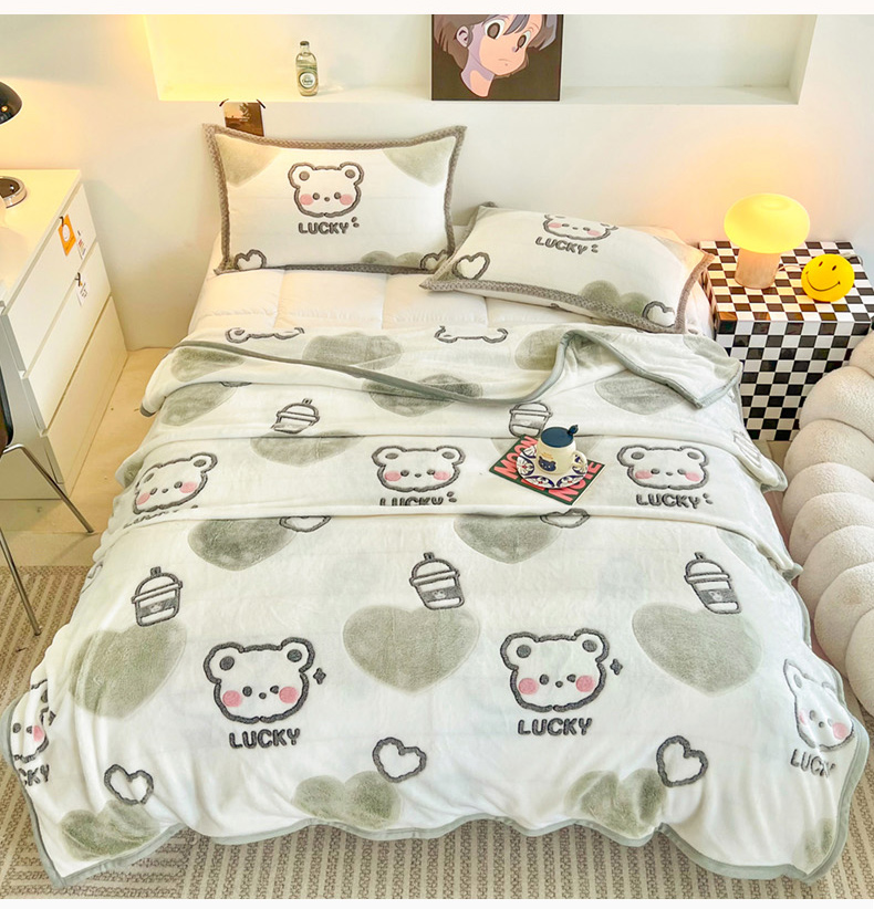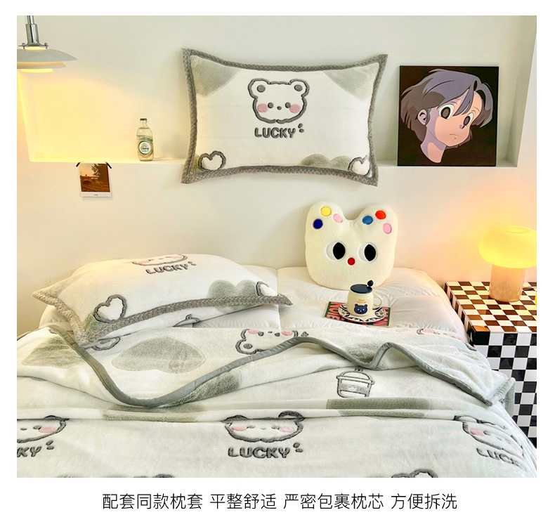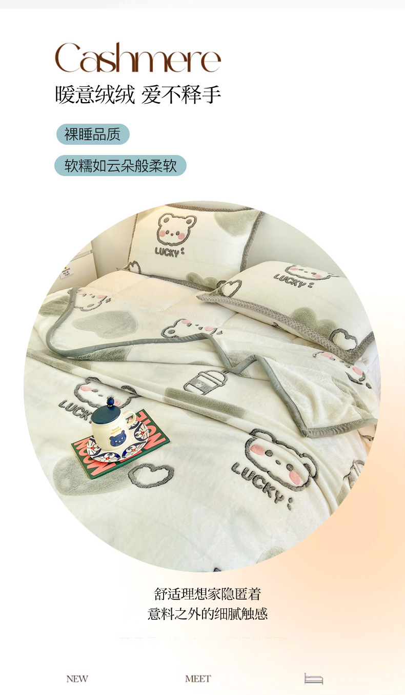 (总)倾慕家纺 2025新款卡通毛巾绣加厚保暖牛奶绒四件套,爱心女孩,咖啡小狗,猫咪熊兔,迷你小车,圣诞树熊,音乐企鹅