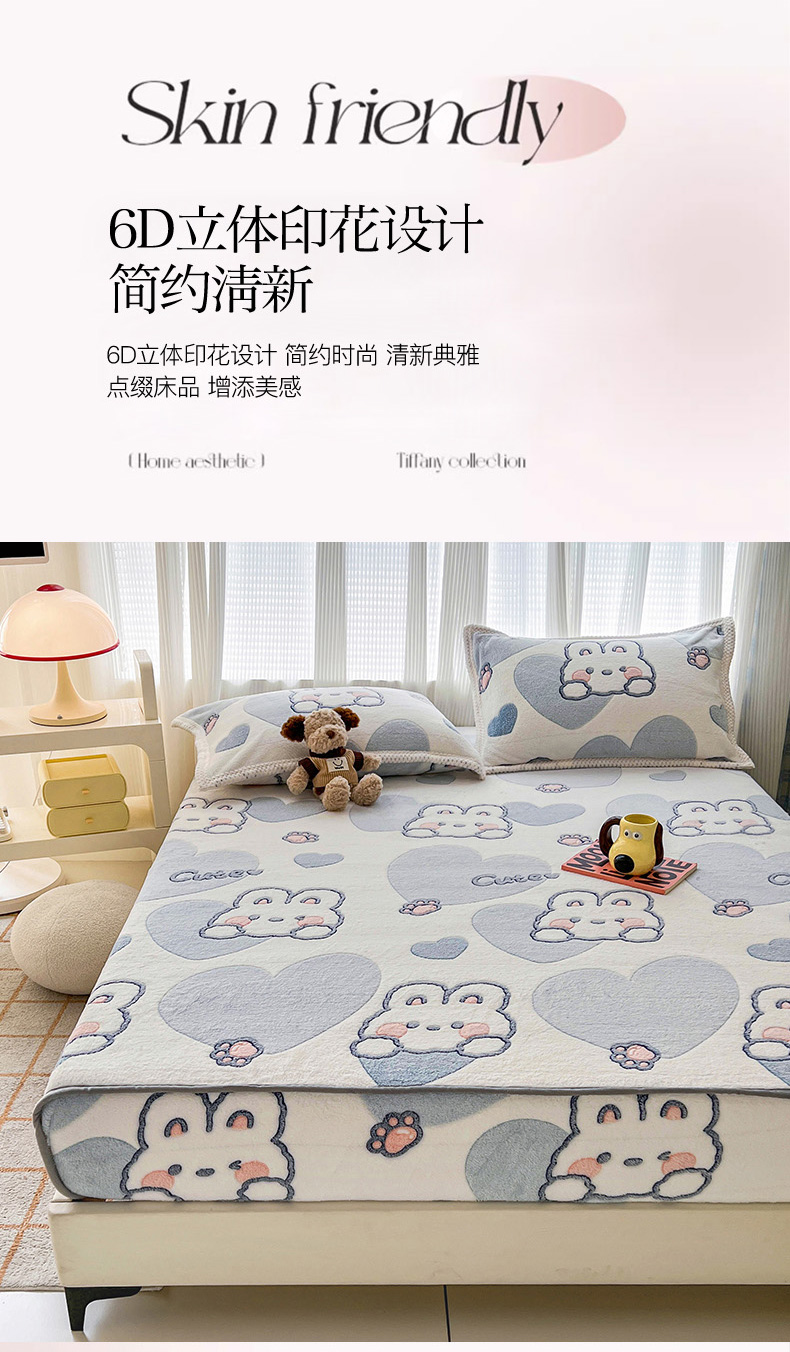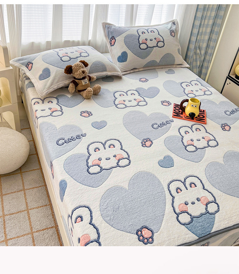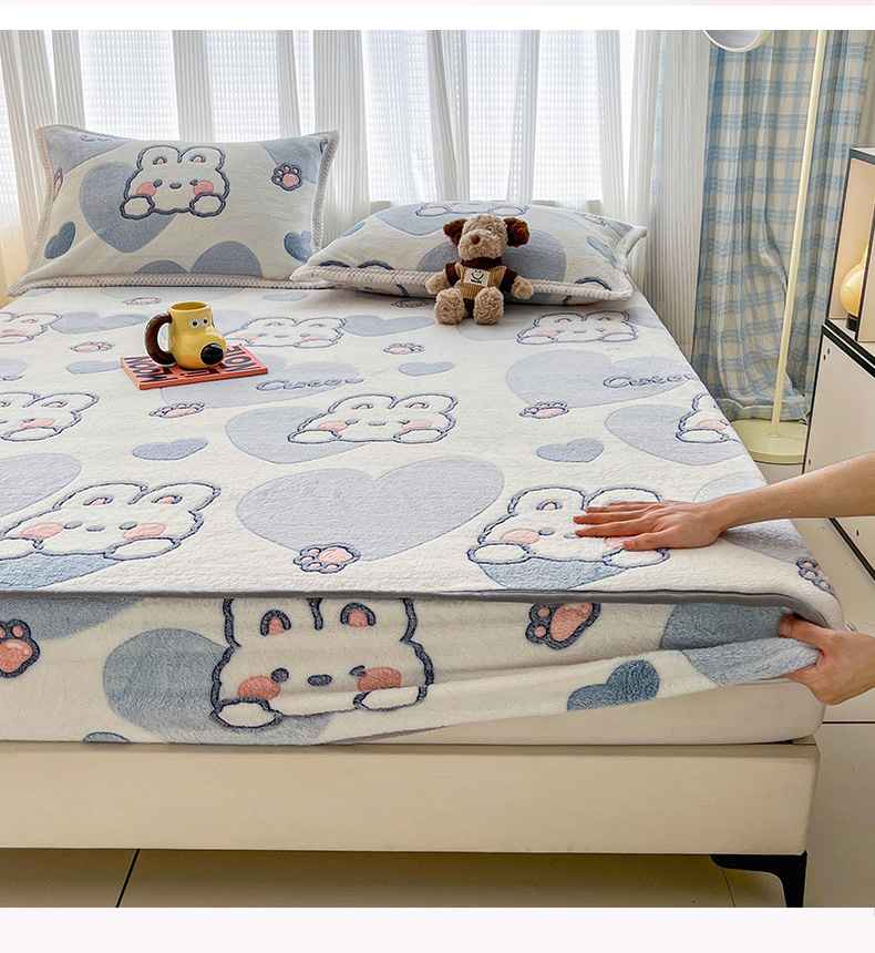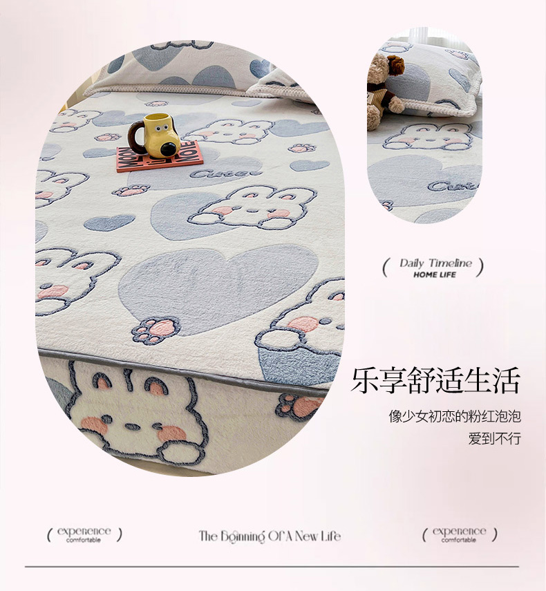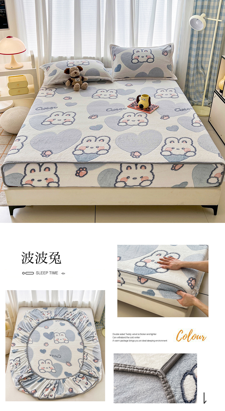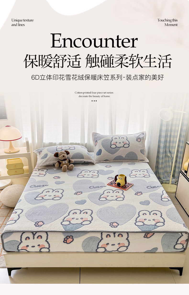 倾慕家纺 2024新款加厚保暖6D立体雪花绒系列-单床笠 波波兔