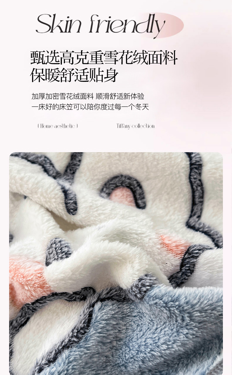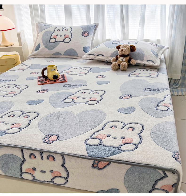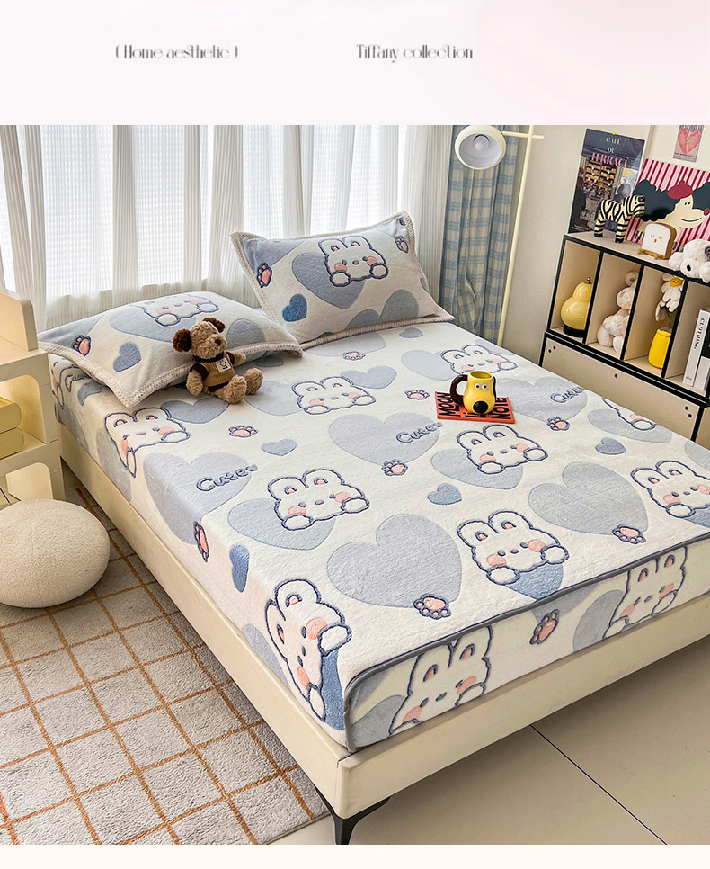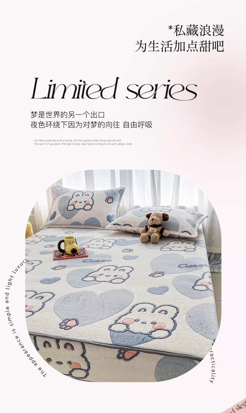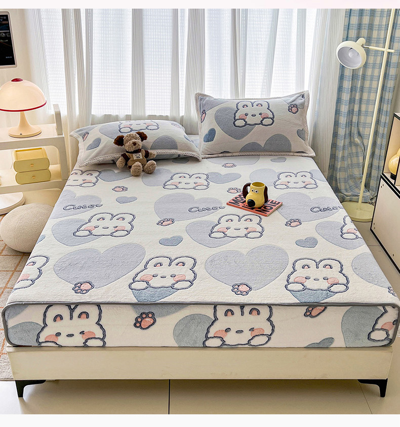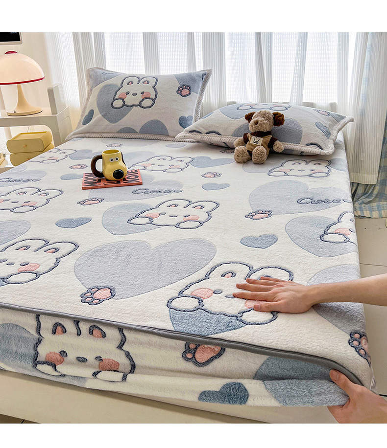 倾慕家纺 2024新款加厚保暖6D立体雪花绒系列-单床笠 波波兔