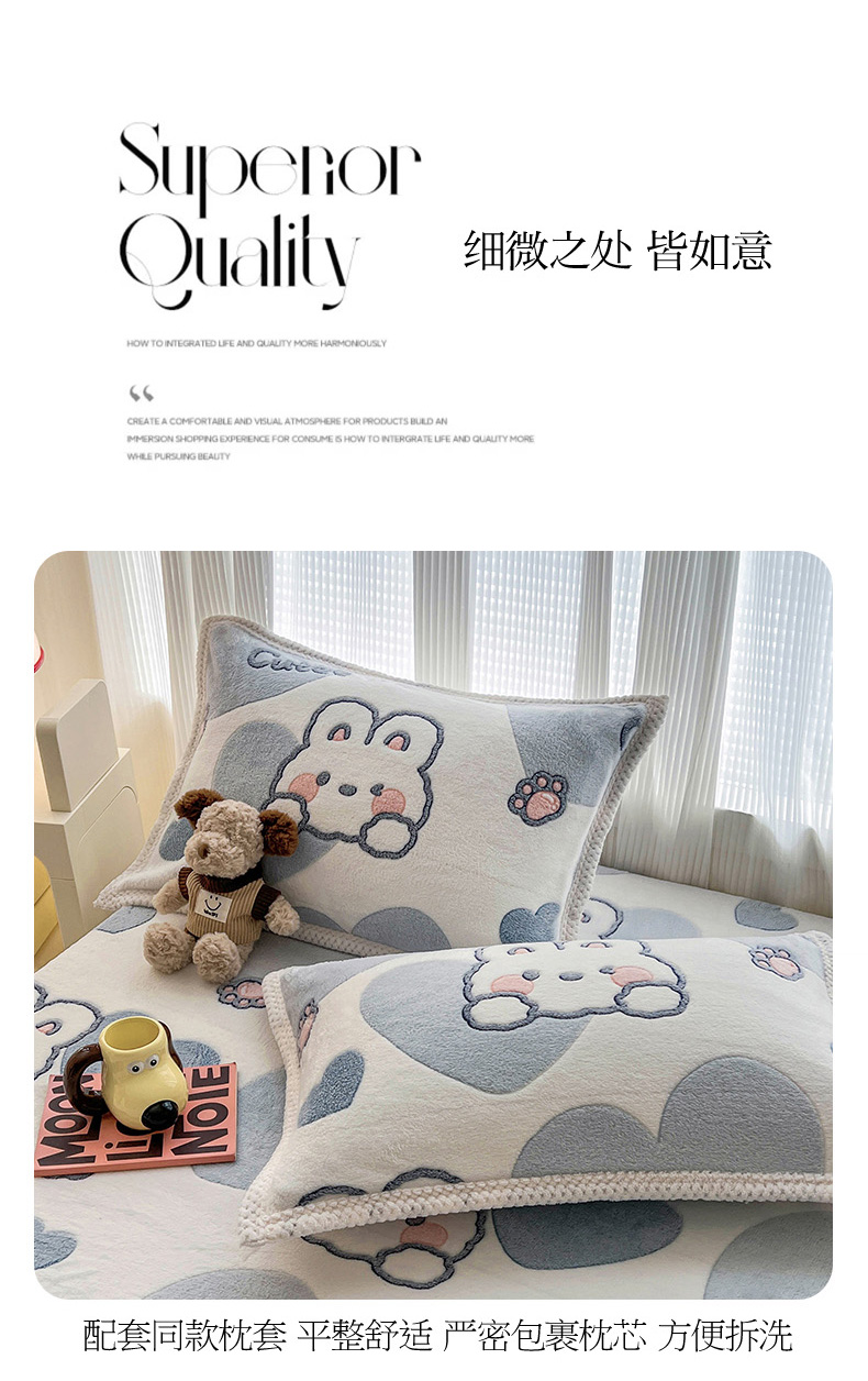 商品名称:倾慕家纺 2024新款加厚保暖6D立体雪花绒系列-单床笠 波波兔