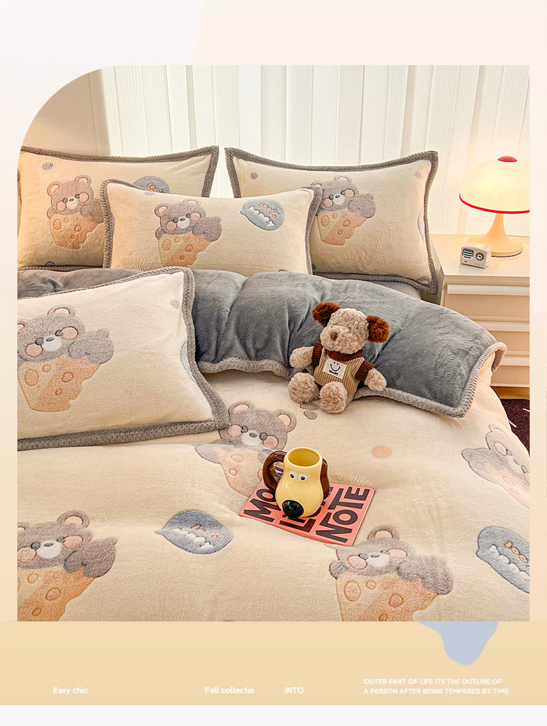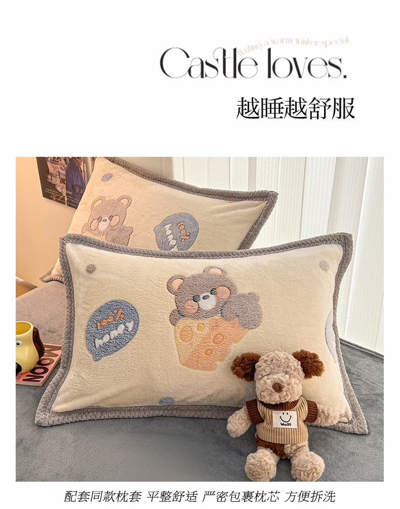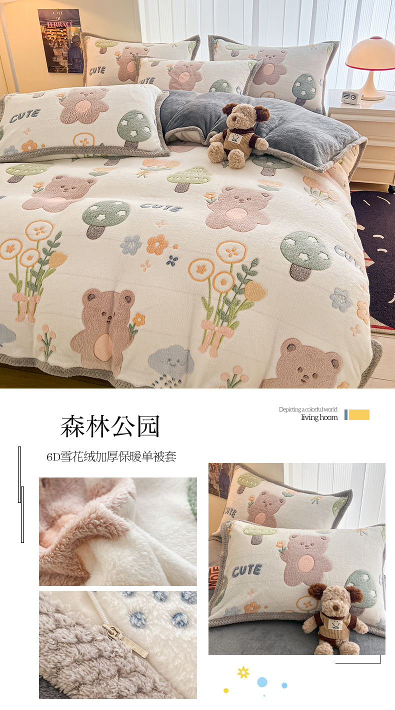 倾慕家纺 2024新款加厚保暖6D立体雪花绒系列-单被套 奶酪小熊