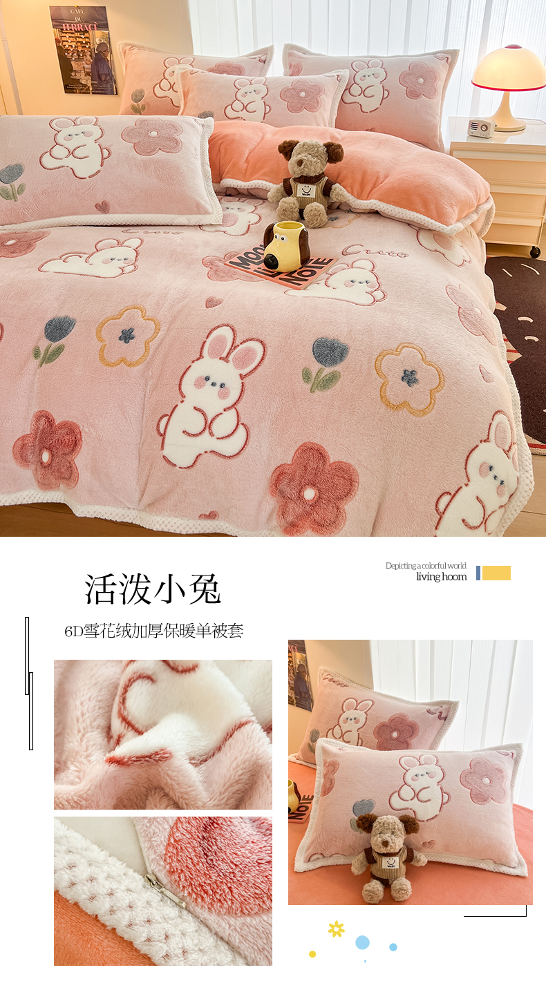 (总)倾慕 2025新款6D立体雪花绒系列四件套,北欧小熊,波波兔,波点头像,格格狗,欢乐小虎,活泼小兔,咖啡熊兔,礼物小狗,萌宠小兔,奶茶小龙灰,奶茶小龙蓝,奶茶小熊,汽车小熊,森林公园,时光小狗,时尚猫咪,小皮皮