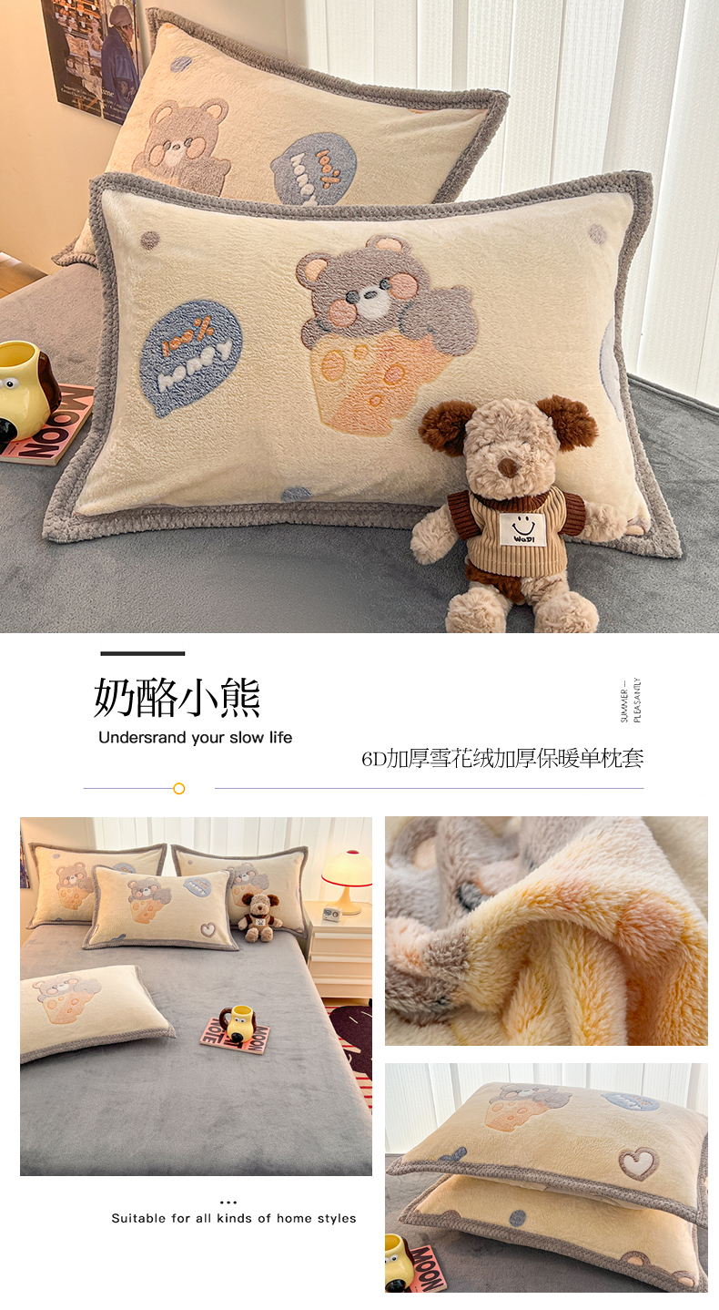 倾慕家纺 2024新款加厚保暖6D立体雪花绒系列-单枕套 奶茶小龙灰