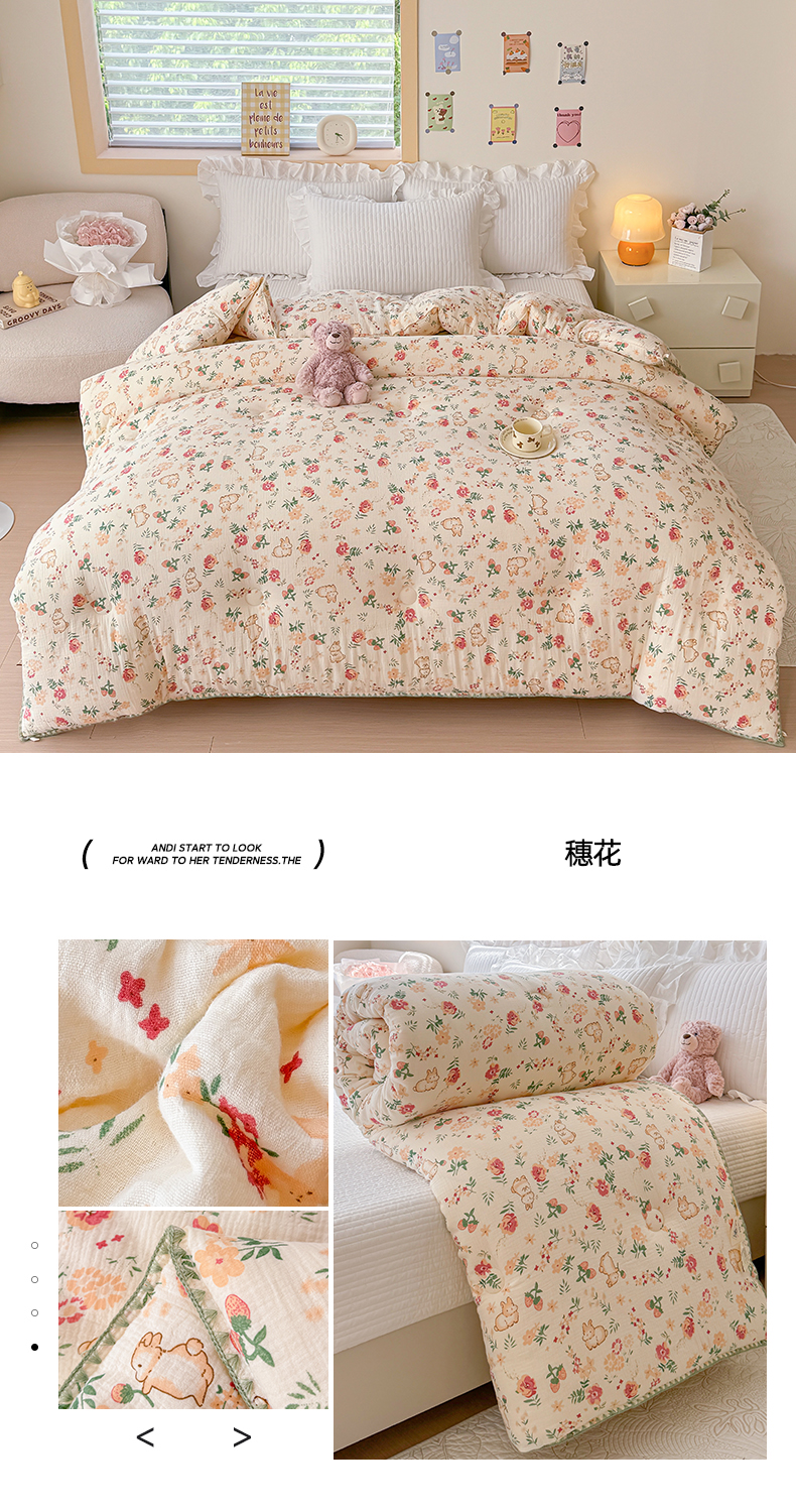 • 91家纺网 家纺一手货源 找家纺 芯恋家居 2025新款秋冬款母婴级全棉皱皱双层纱大豆被春秋被加厚大豆被 穗花