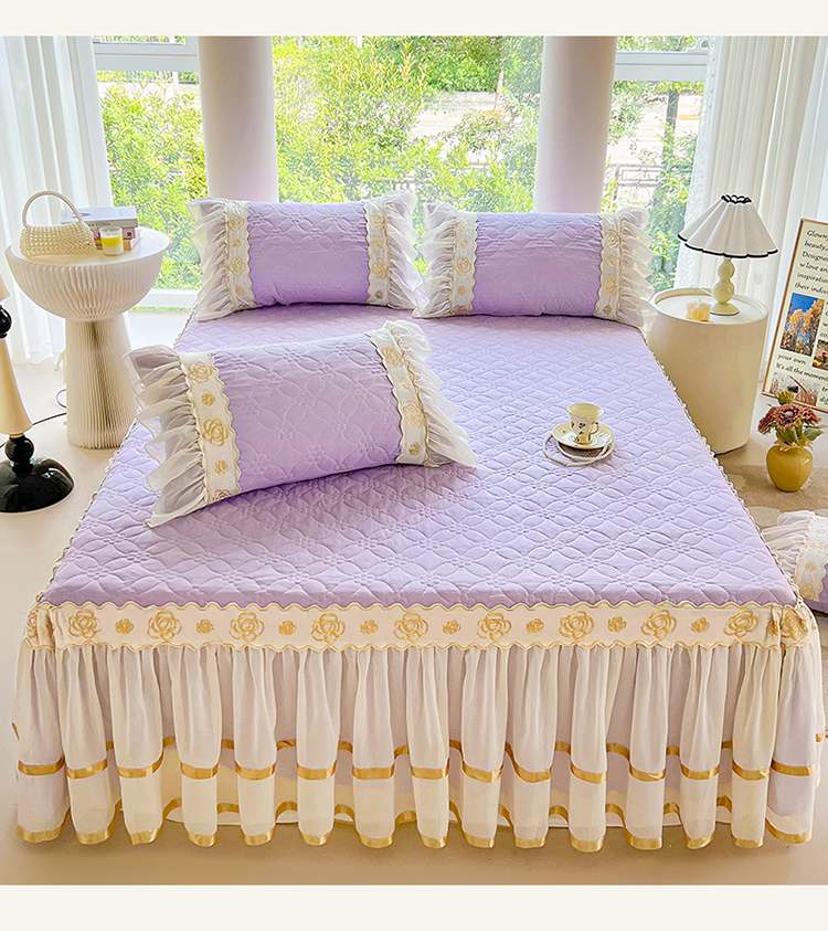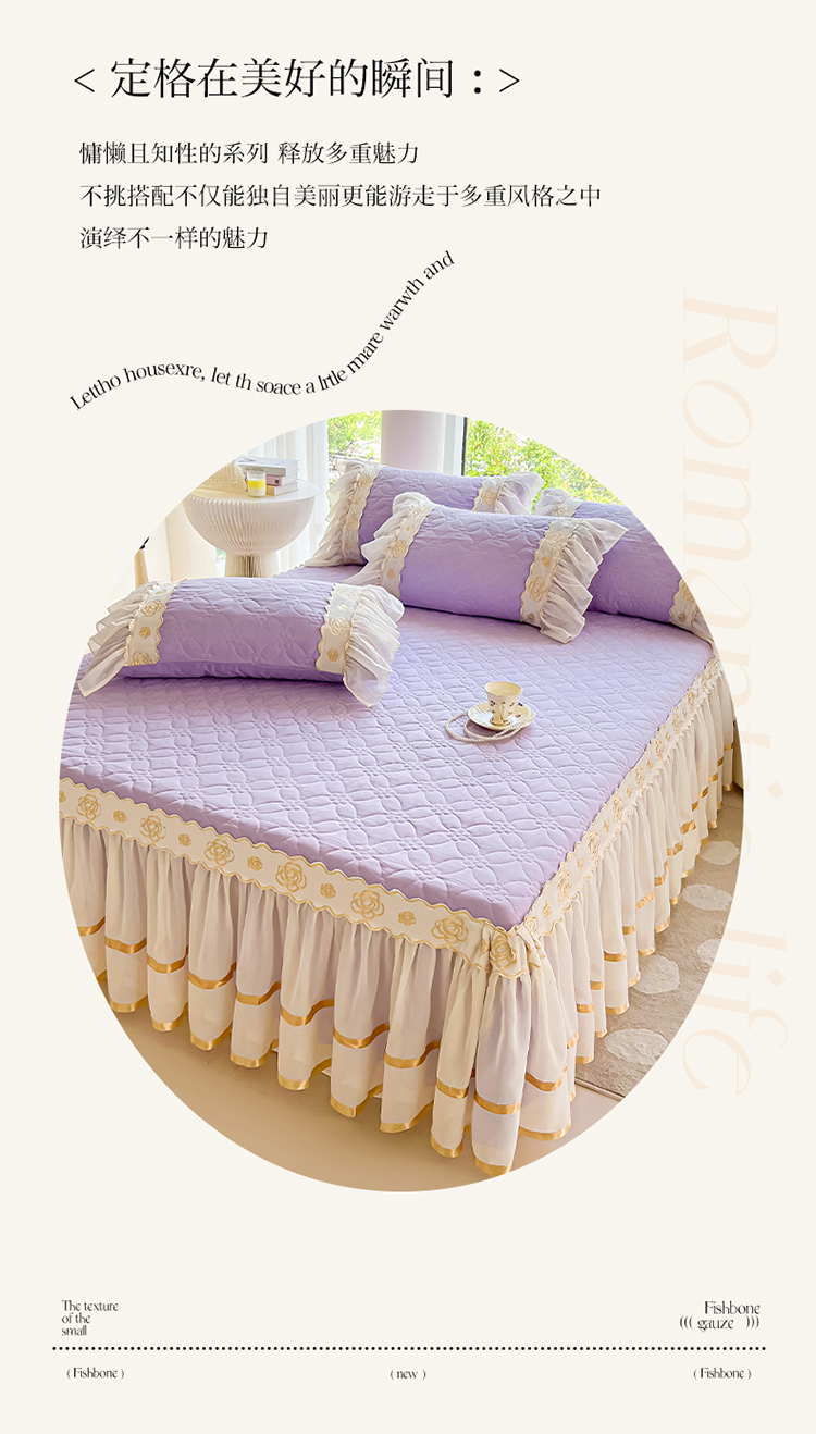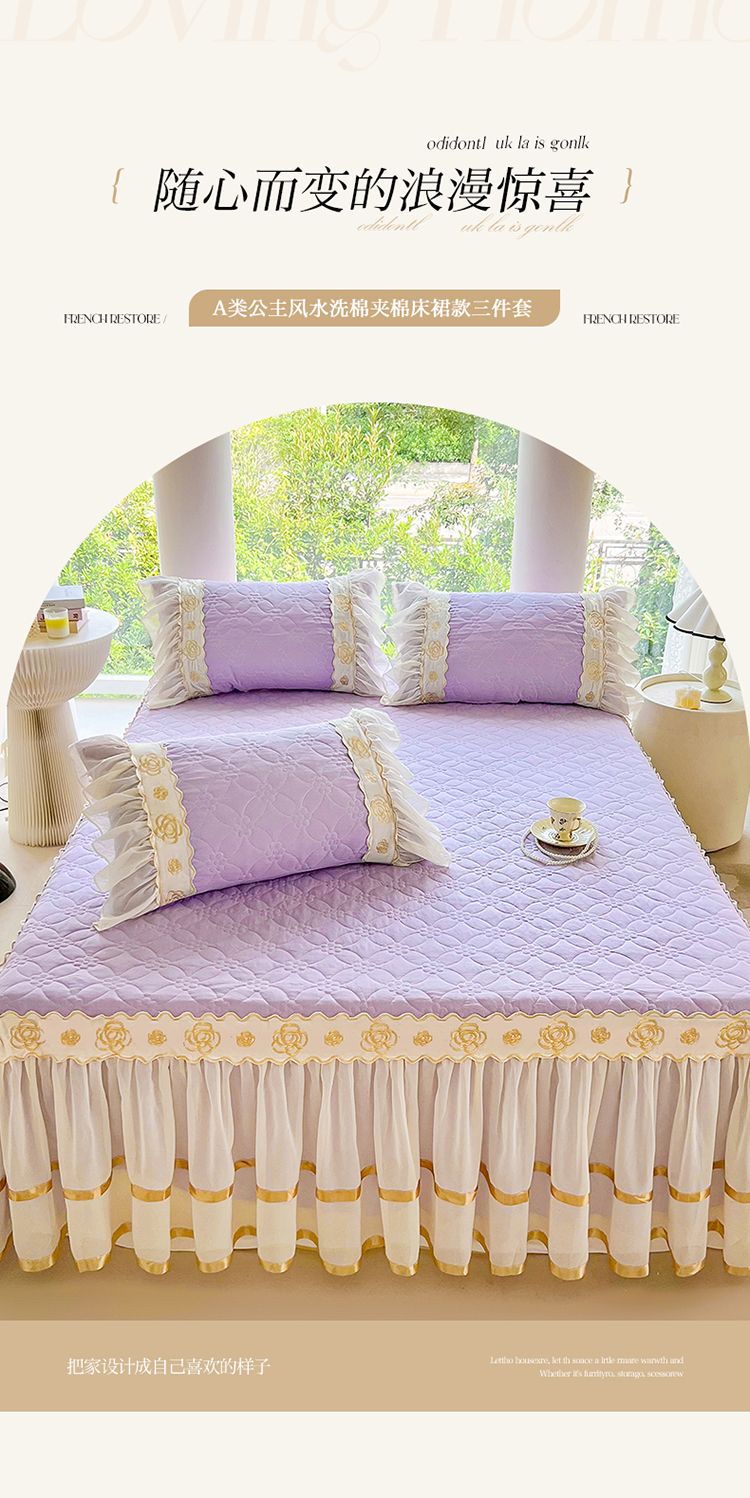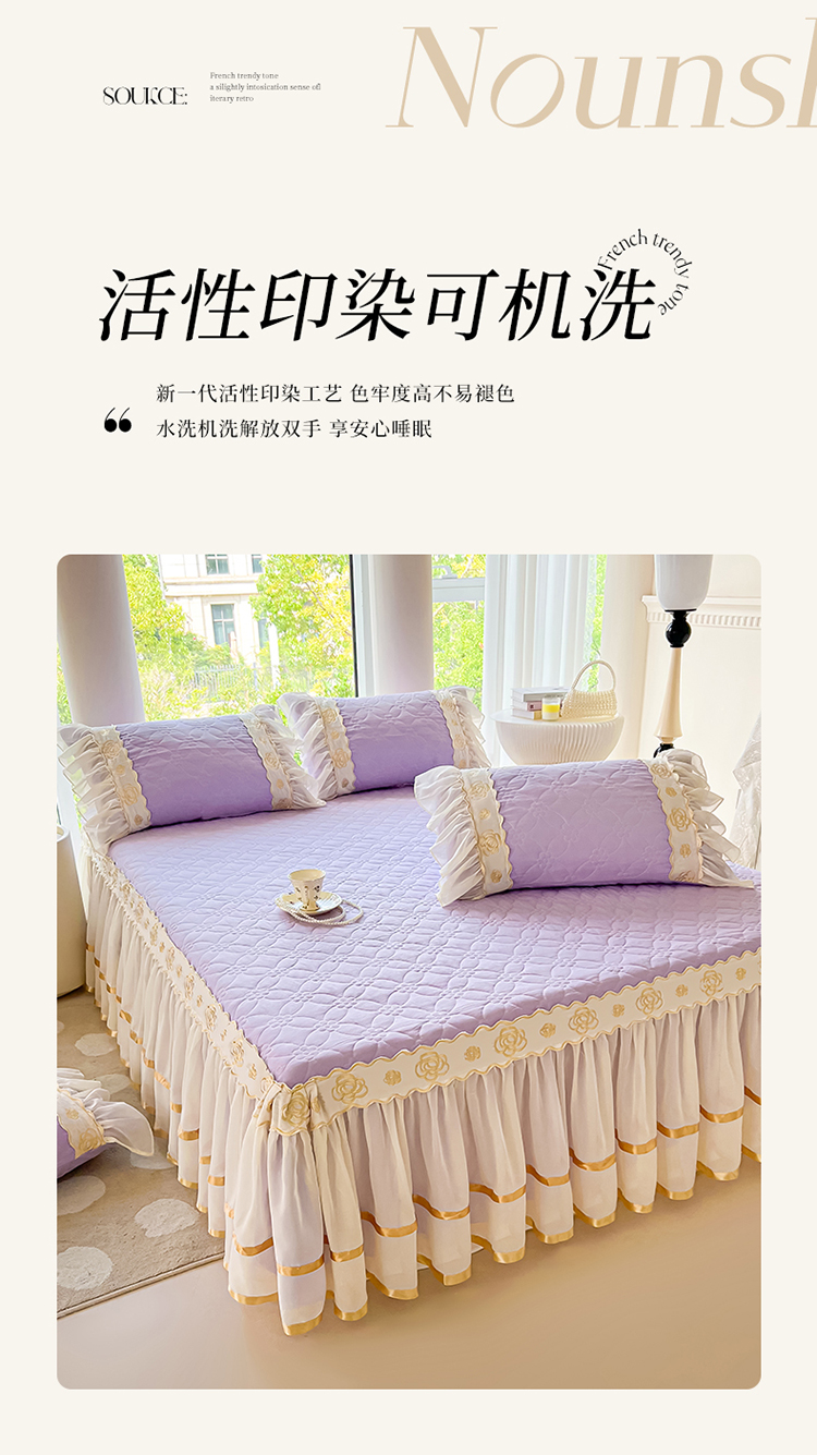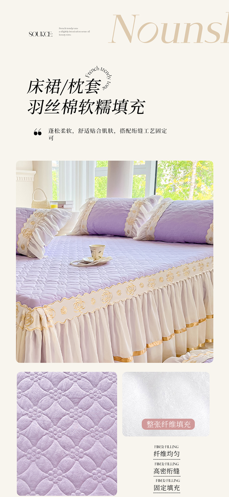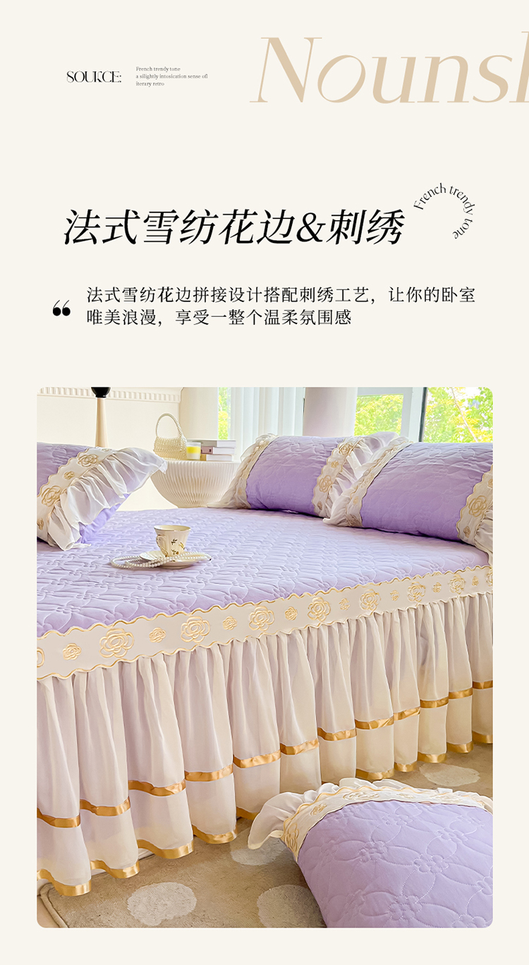 商品名称:罗艺轩 2024新款公主风水洗棉夹棉床裙-花蔓花蔓-茉莉紫