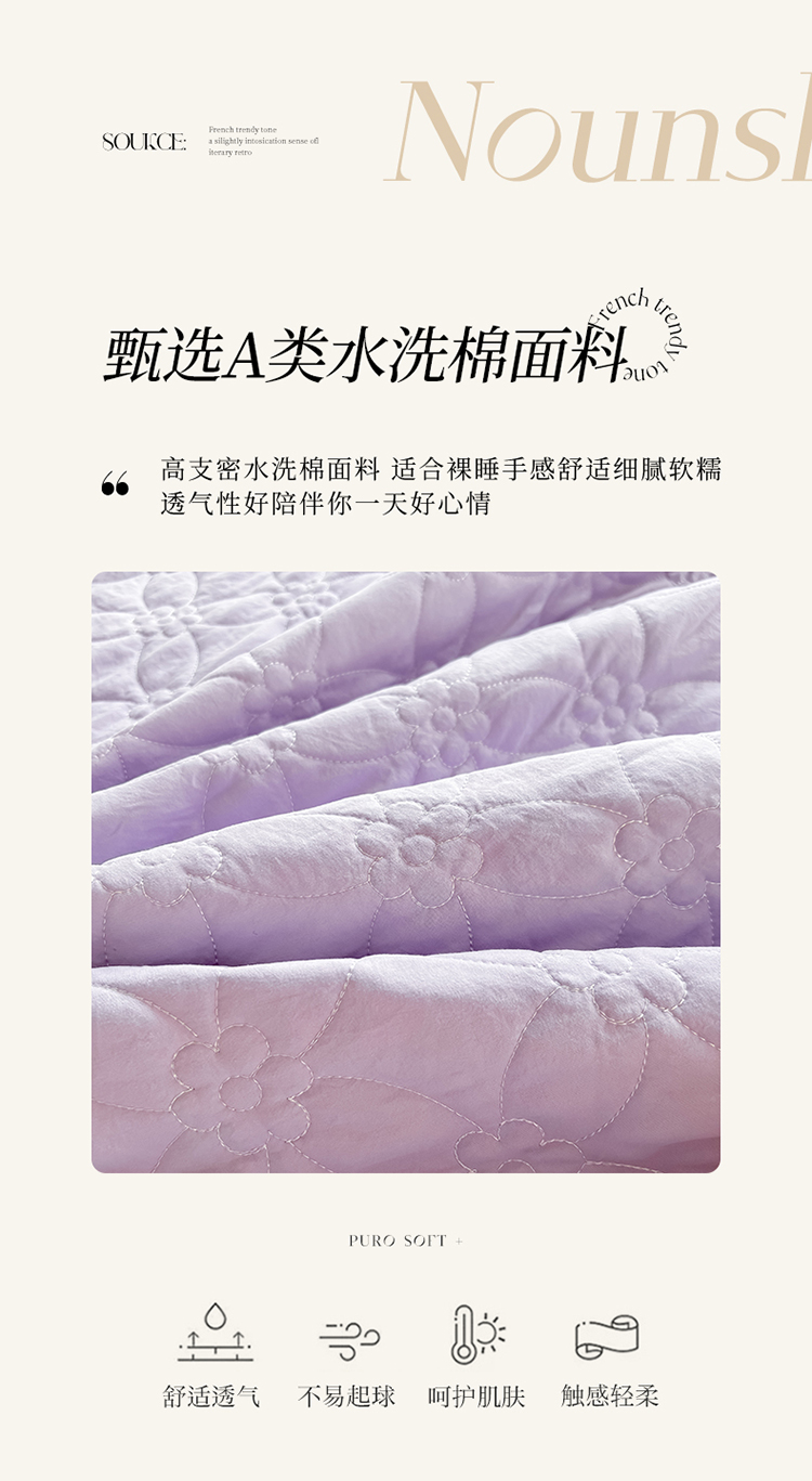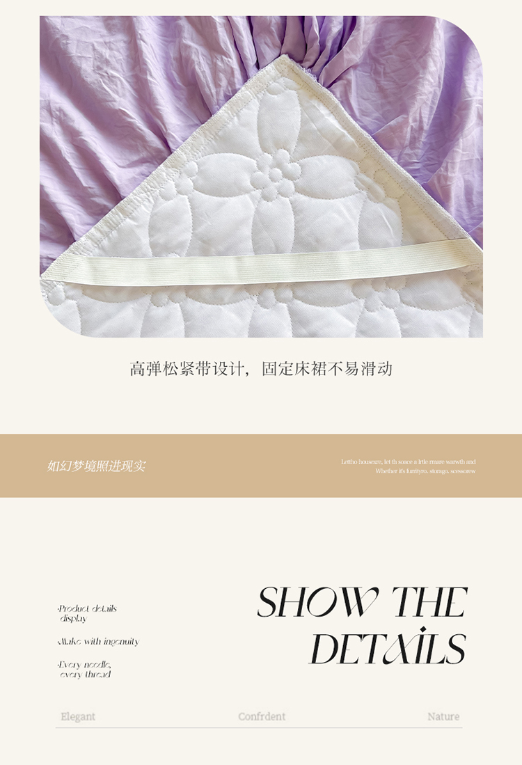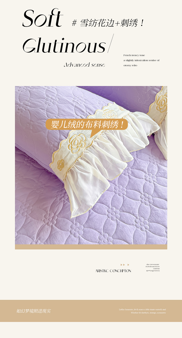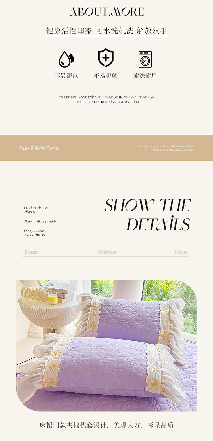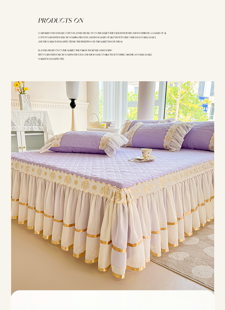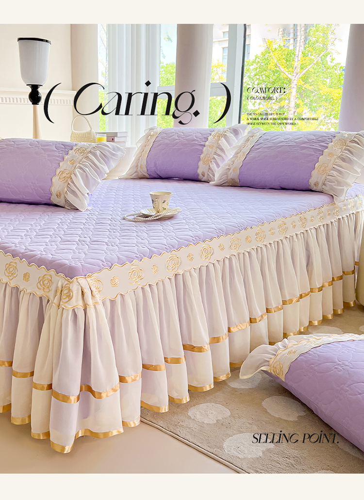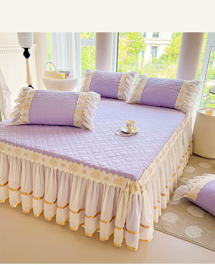 商品名称:罗艺轩 2024新款公主风水洗棉夹棉床裙-花蔓花蔓-茉莉紫