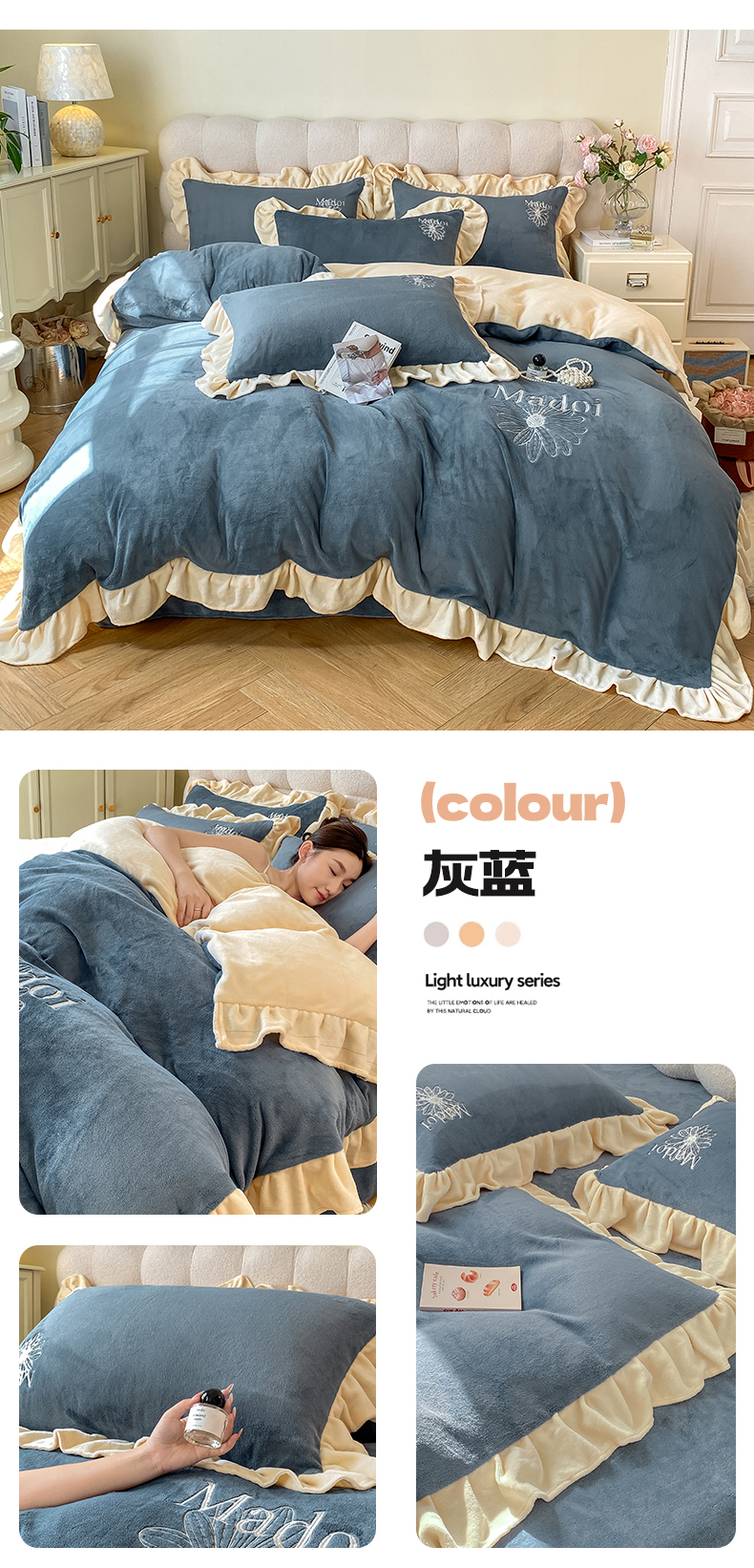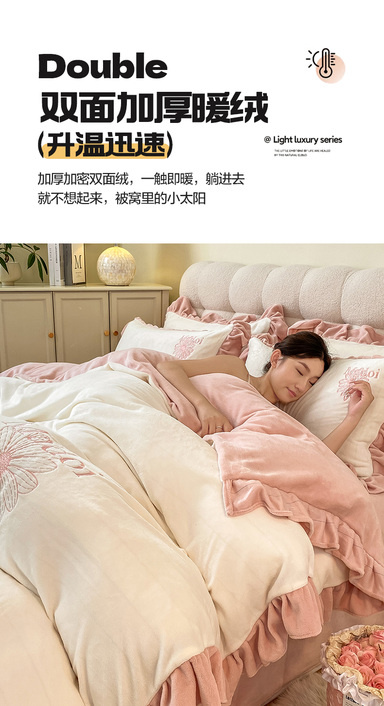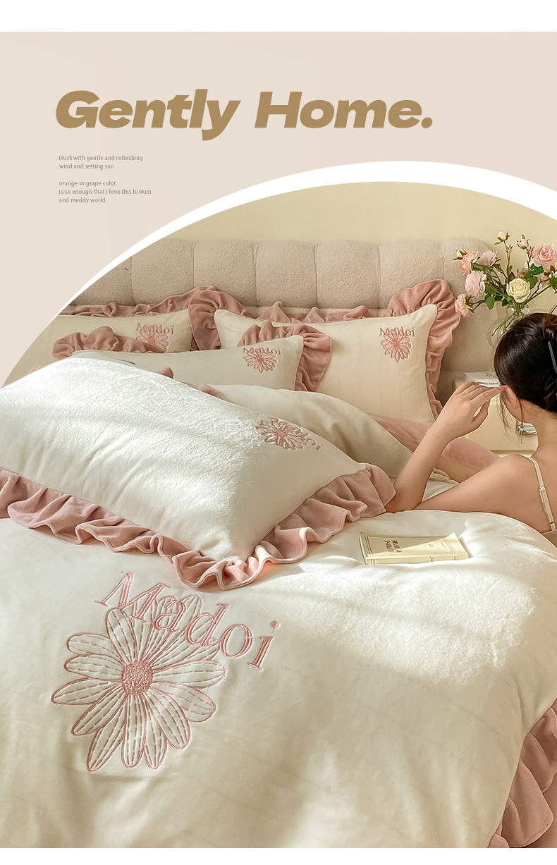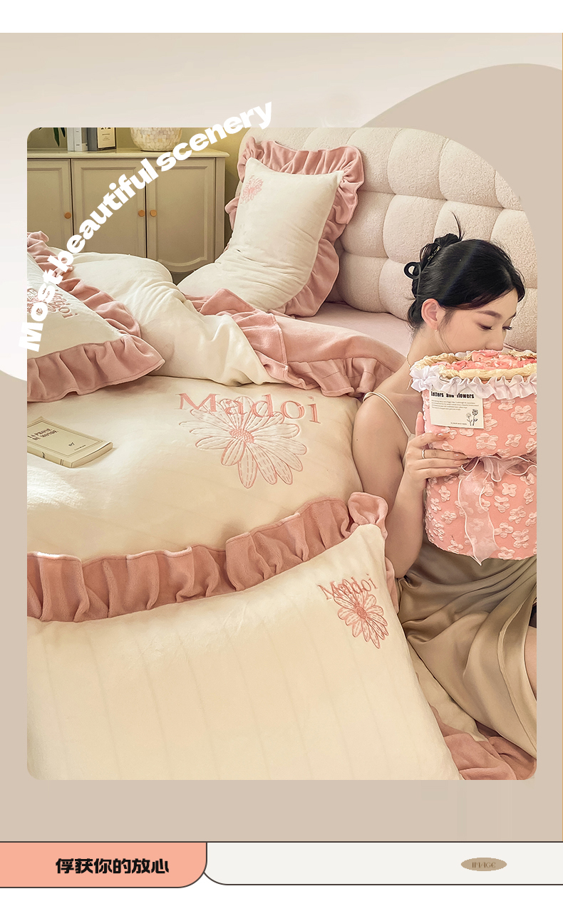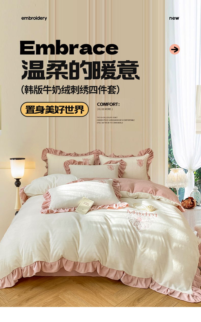 当前位置: 91家纺网 > 商品网购 > 床品套件 > 四件套 > 牛奶绒四件套 > 首尔家纺 2024新款牛奶绒刺绣花边款四件套-一朵系列 一朵-象牙白