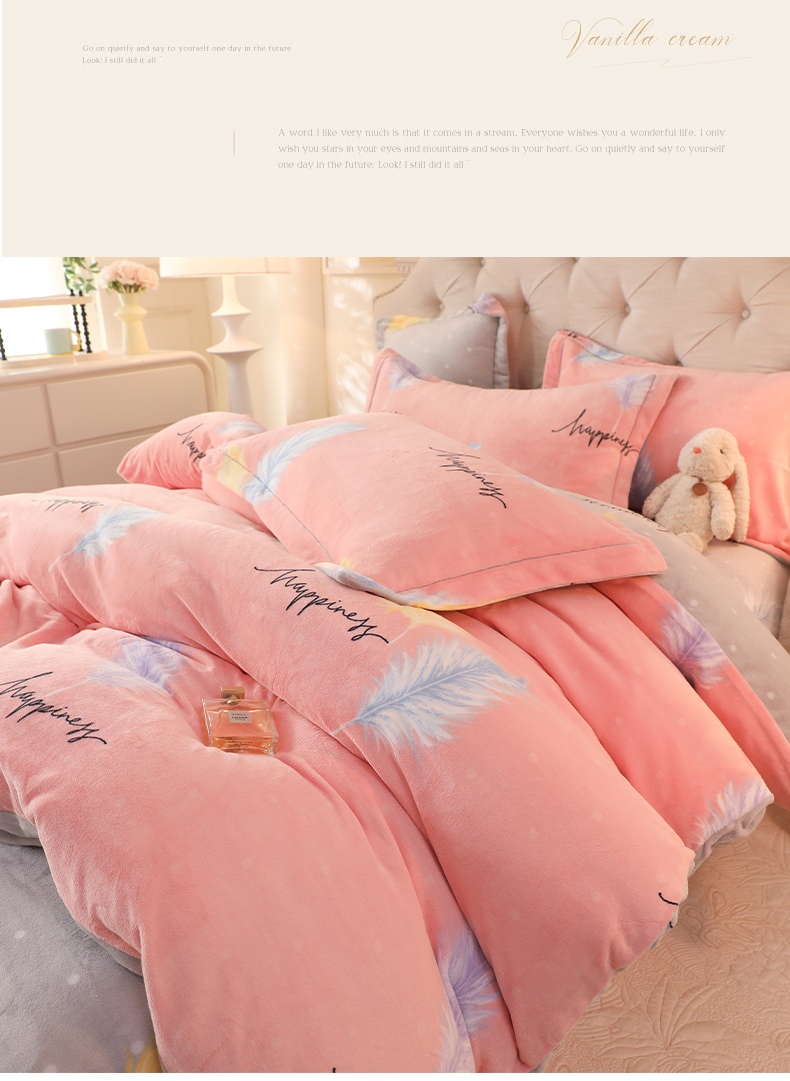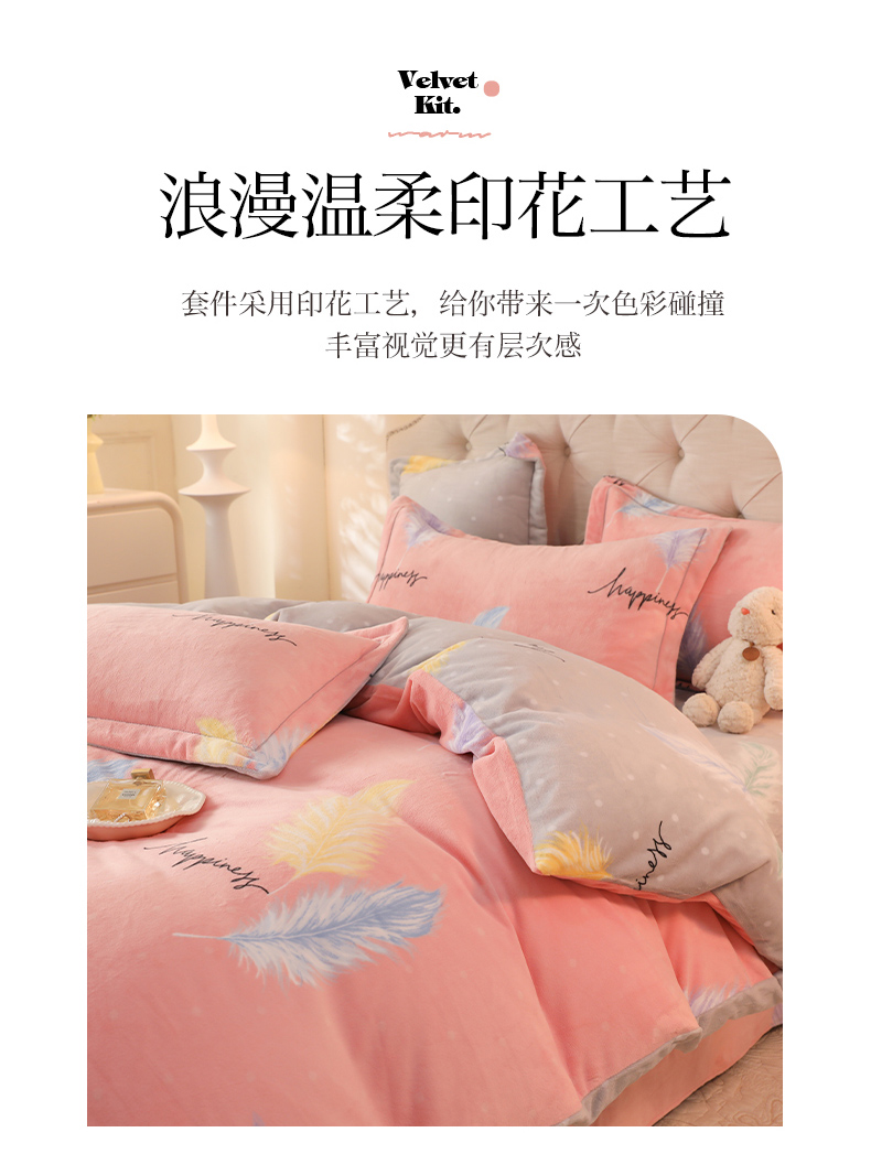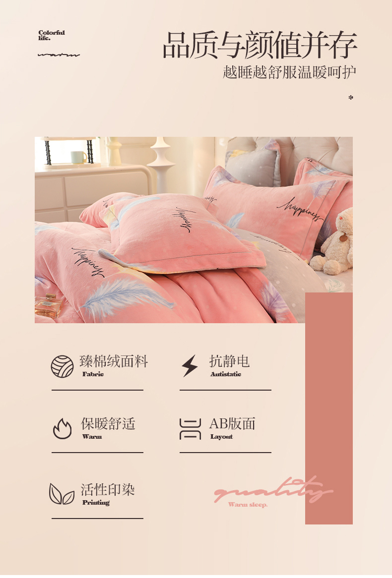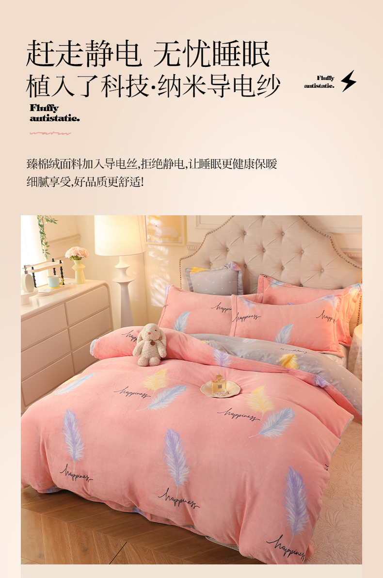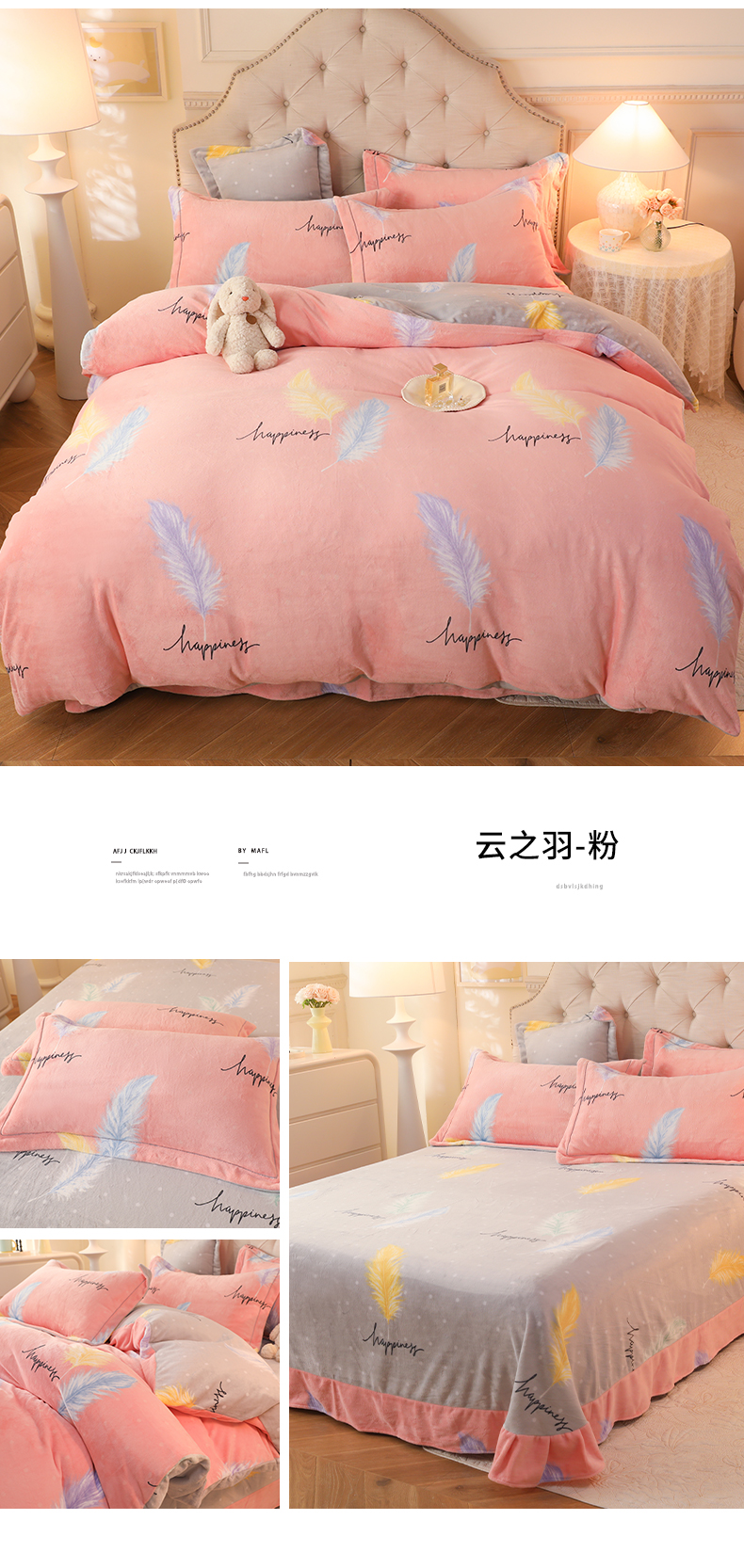 商品名称:简如 2025新款冰岛臻绵绒印花系列单被套牛奶绒单被套 云之羽-粉
