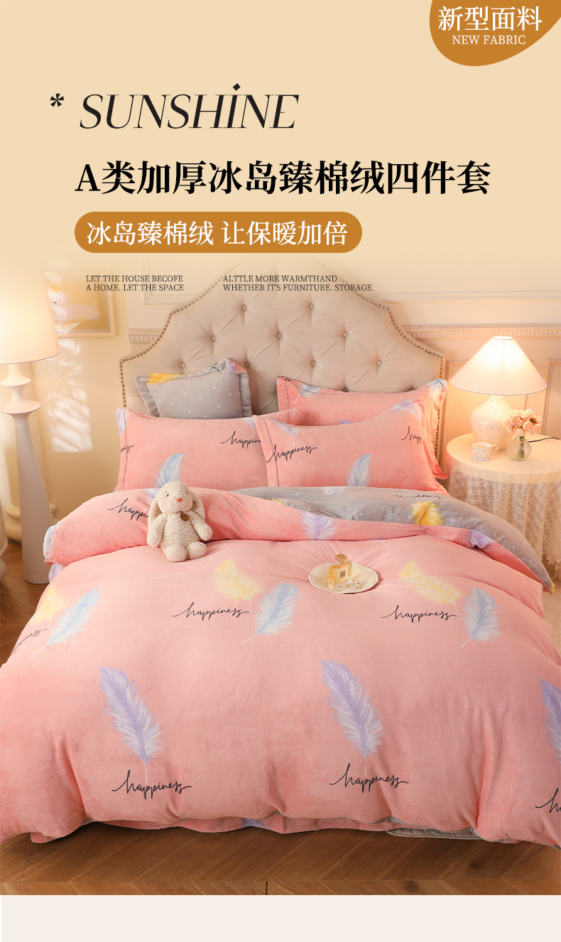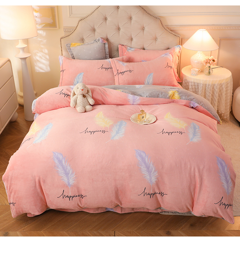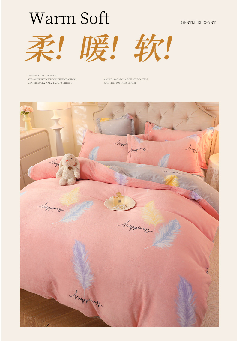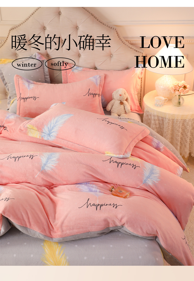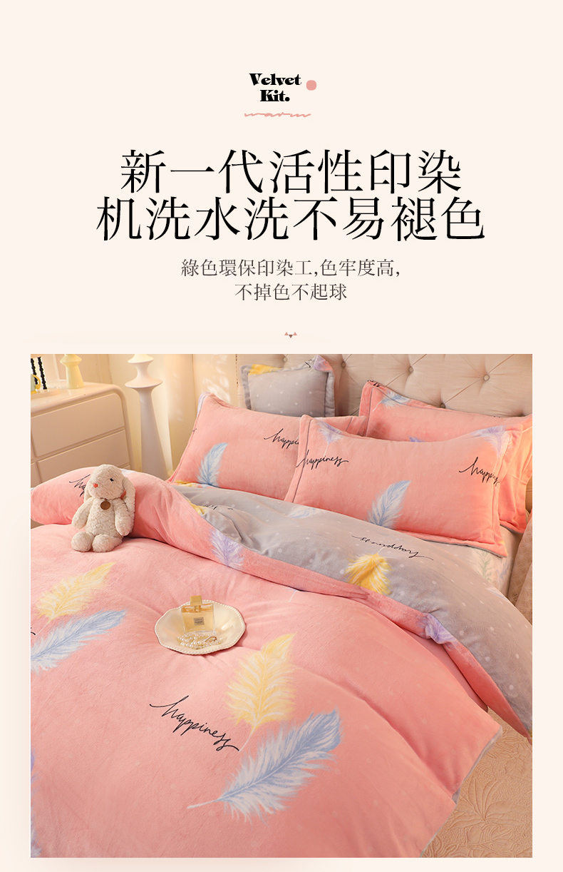 商品名称:简如 2025新款冰岛臻绵绒印花系列单被套牛奶绒单被套 云之羽-粉
