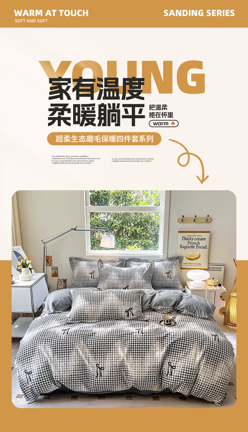 (总)品乐家纺 2025秋冬新款糯米绒缇肤绒印花贝壳边四件套,卡拉-灰,开心熊-米,南笙-咖,南笙-绿,浅夏-咖,素影-酒红,素影-紫,小樱桃-酒红,叶茂-驼