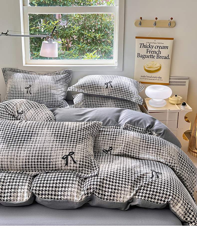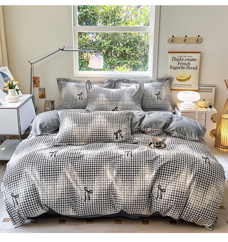 品乐家纺 2024新款全棉生态棉印花磨毛四件套 都市爱情-黑