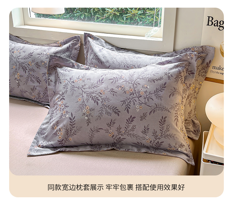 商品名称:品乐家纺 2024新款全棉生态棉印花磨毛四件套 锁清秋-灰
