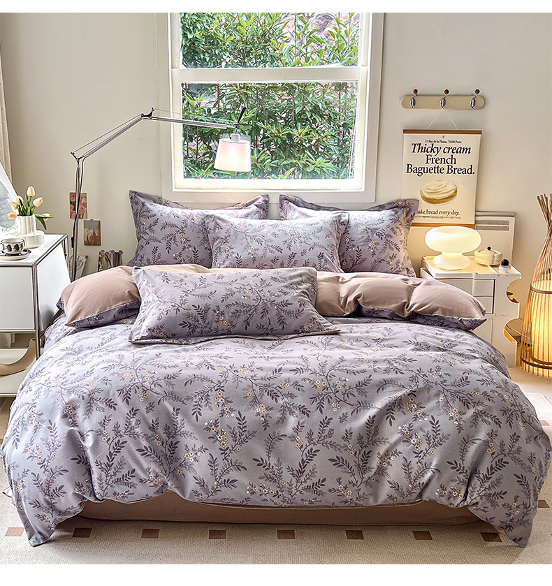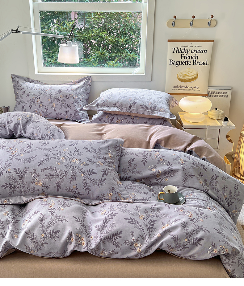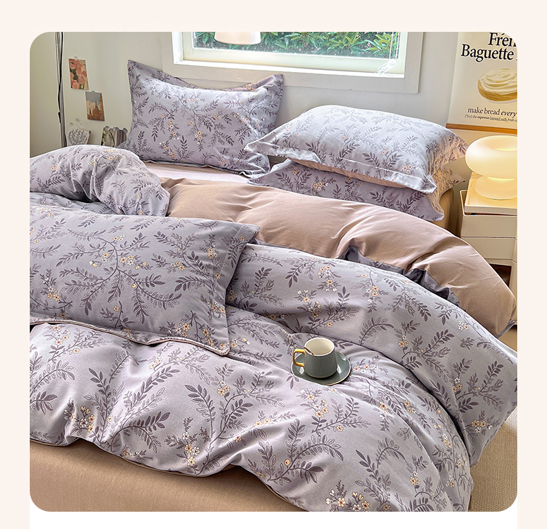 品乐家纺 2024新款全棉生态棉印花磨毛四件套 锁清秋-灰