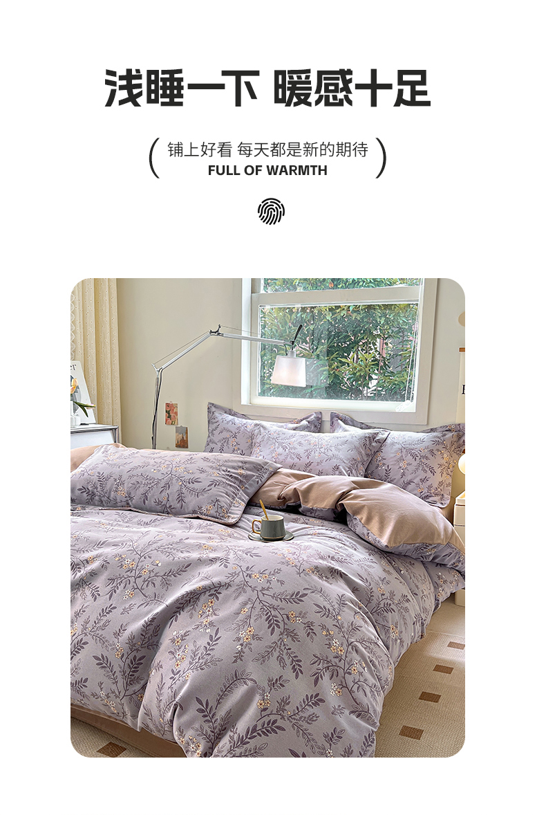 (总)品乐家纺 2025秋冬新款糯米绒缇肤绒印花贝壳边四件套,卡拉-灰,开心熊-米,南笙-咖,南笙-绿,浅夏-咖,素影-酒红,素影-紫,小樱桃-酒红,叶茂-驼